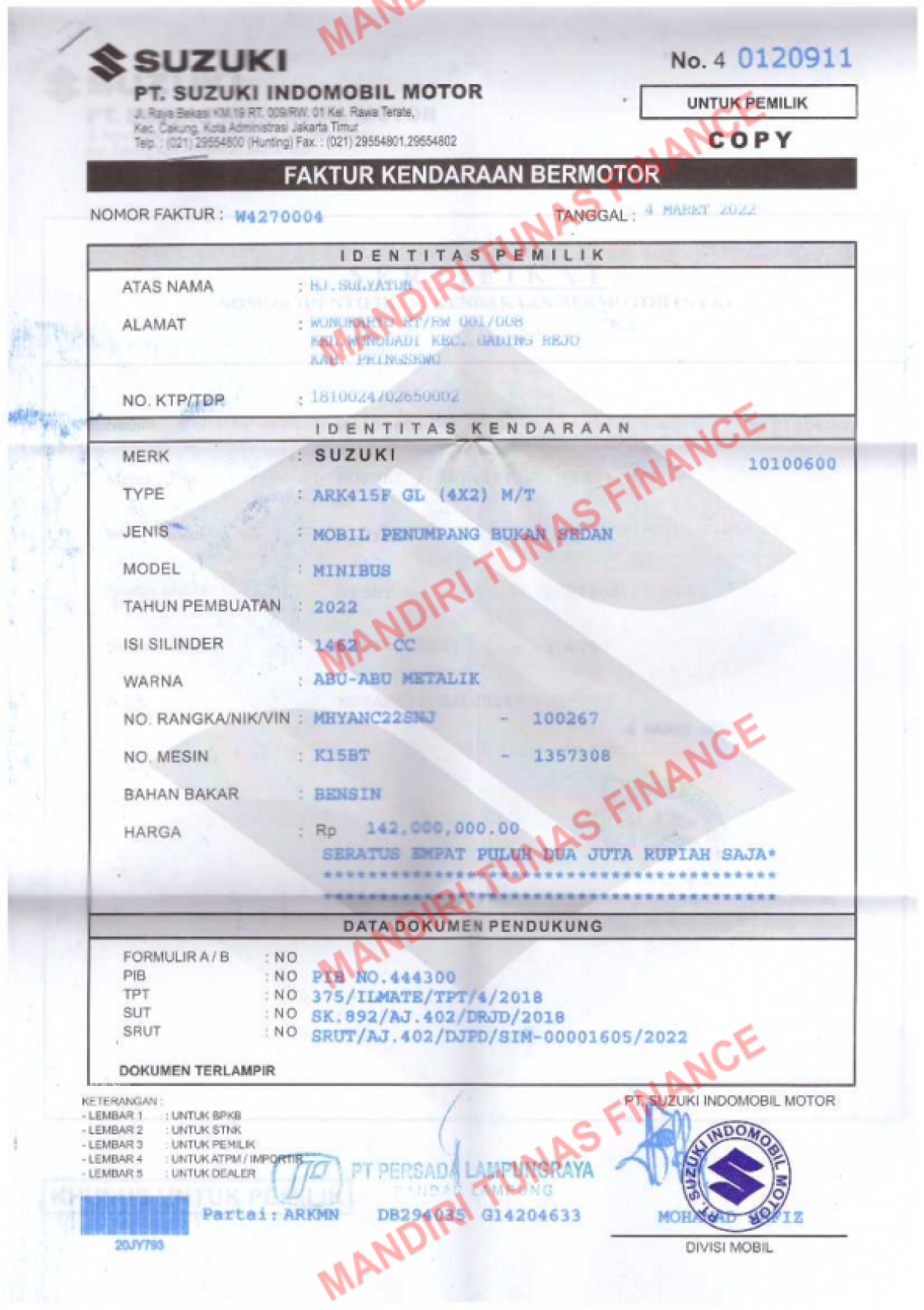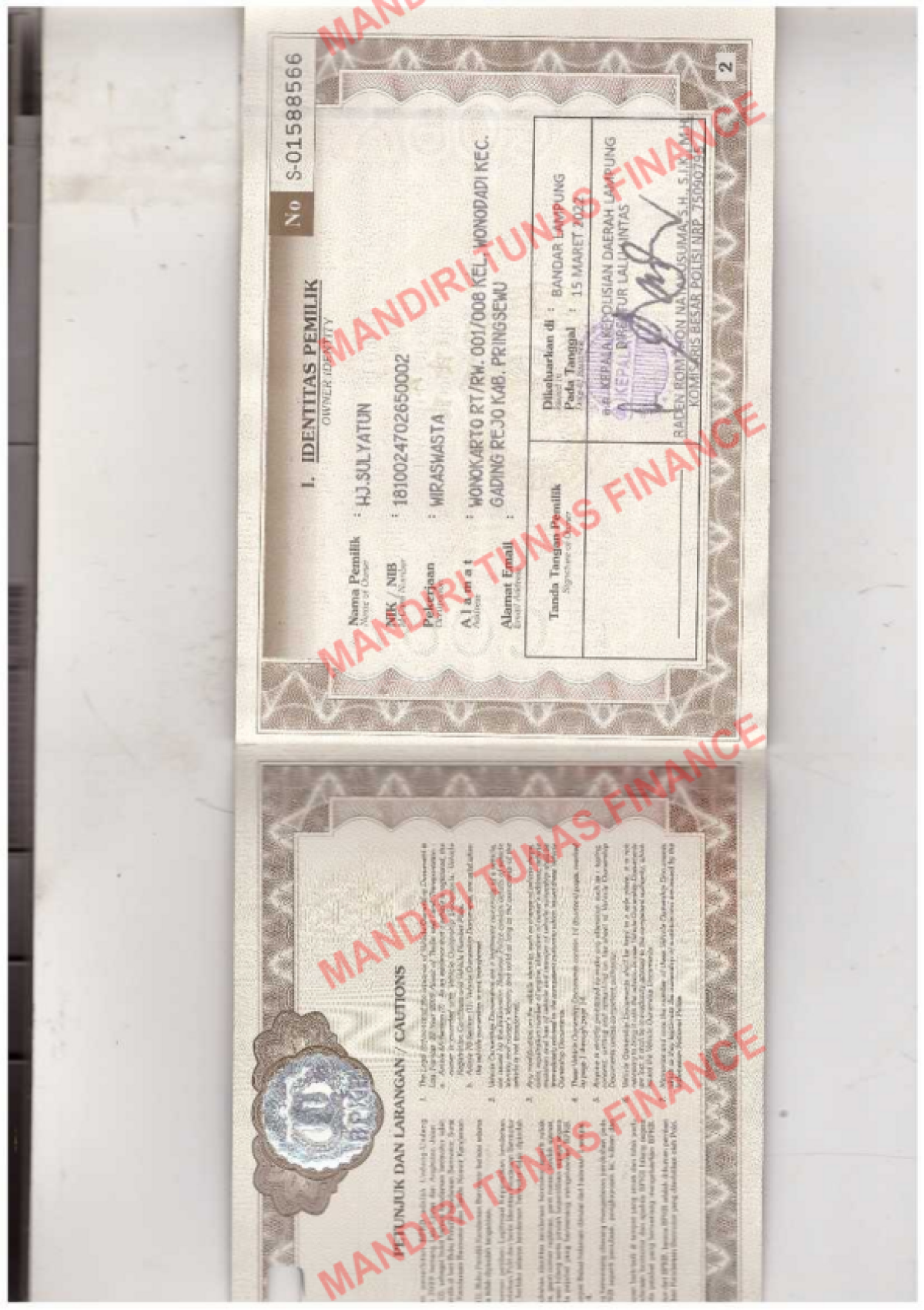 UNIT DIKENAKAN BIAYA ROYA FIDUSIA 100.000//NOPOL FISIK TA