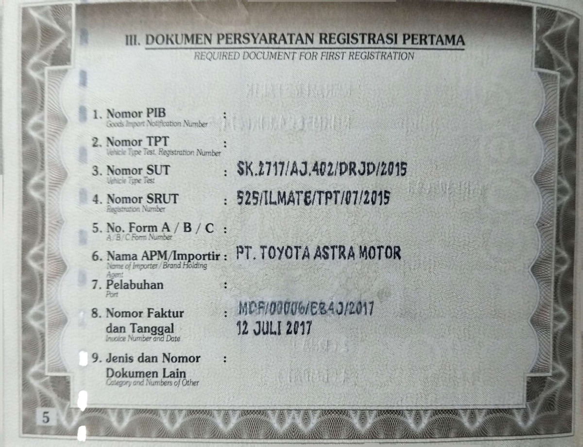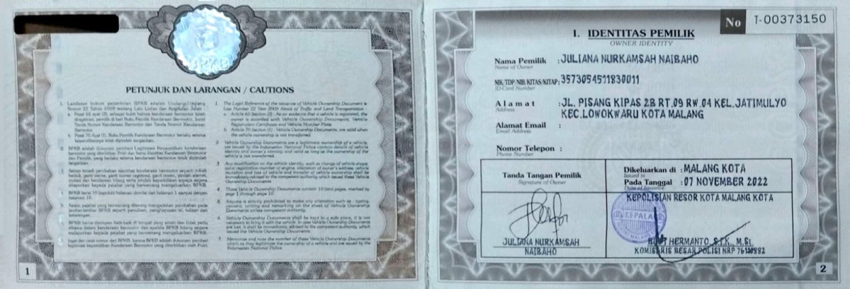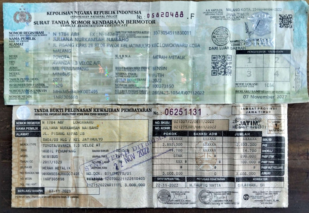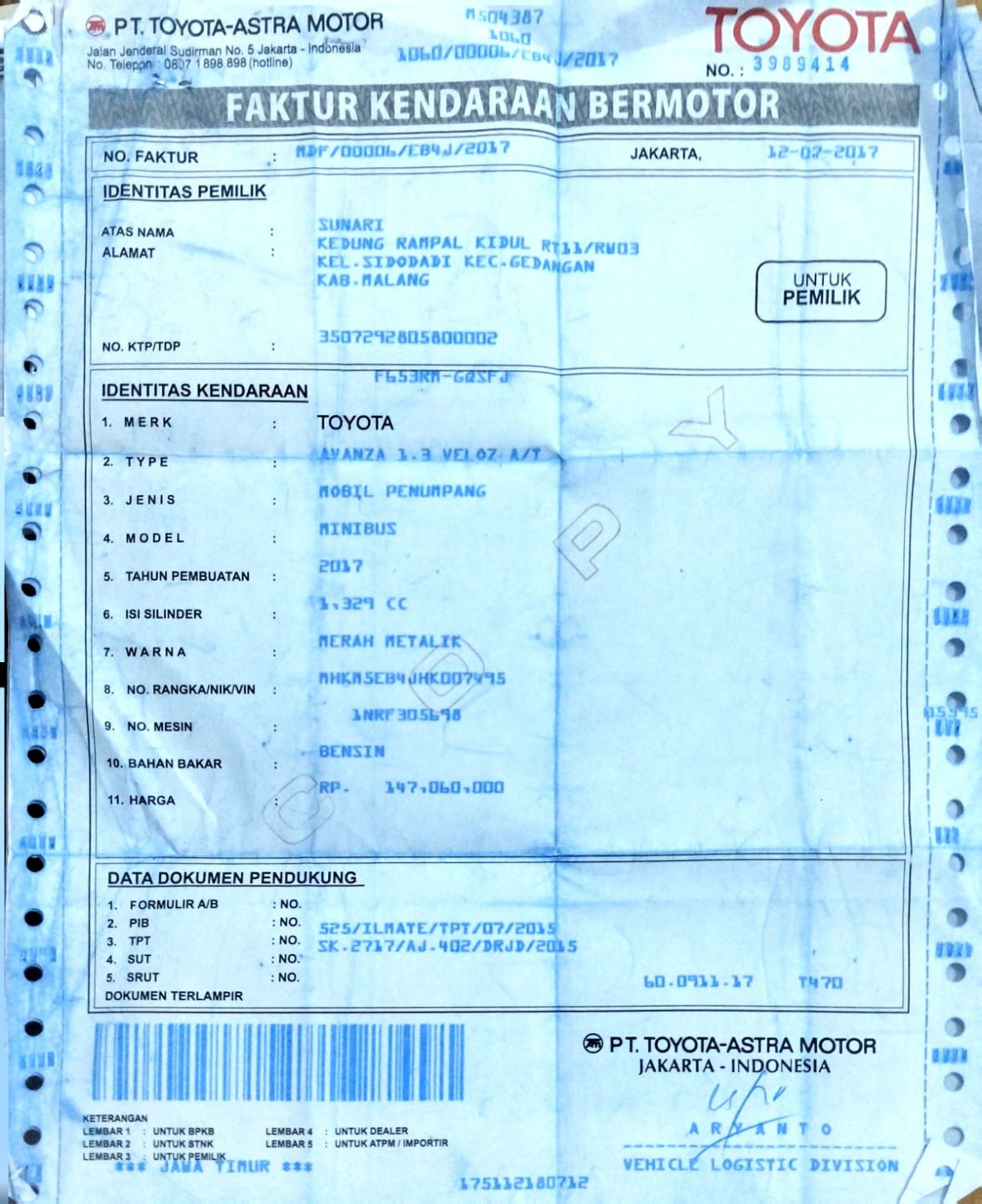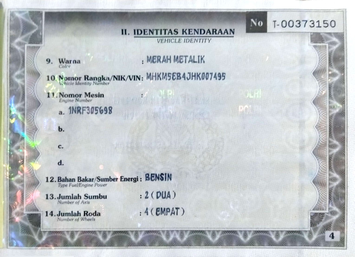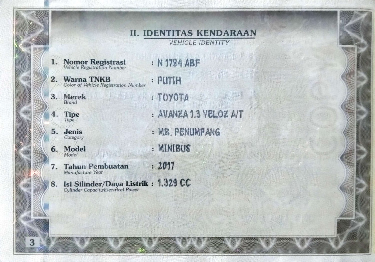 | No. Polisi | : | N 1784 ABF |
