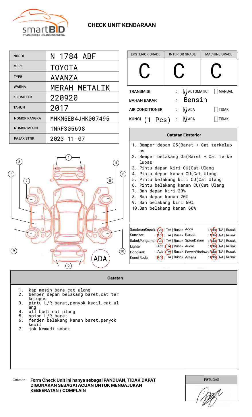 SEBELUM MELAKUKAN PENAWARAN UNIT PESERTA LELANG WAJIB MELAKUKAN PENGECEKAN UNIT DAN DOKUMEN TERLEBIH DAHULU