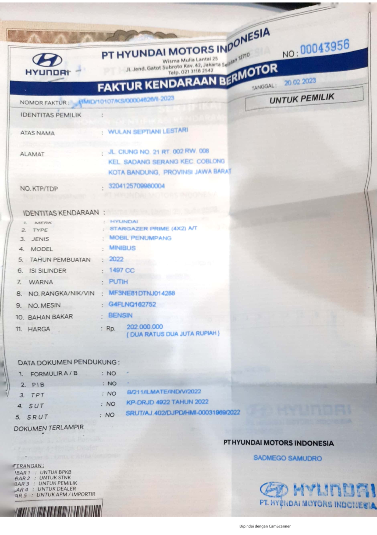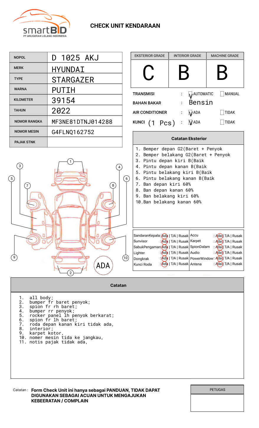 SEBELUM MELAKUKAN PENAWARAN UNIT PESERTA LELANG WAJIB MELAKUKAN PENGECEKAN UNIT DAN DOKUMEN TERLEBIH DAHULU // PIC DENNY : 0852-9442-5362 // UNIT DIKENAKAN BIAYA PPN 1.1% DARI HARGA TERBENTUK // NOTICE PAJAK TA // BEBERAPA DIGIT AWAL NOSIN FISIK TIDAK TERJANGKAU (TERHALANG)