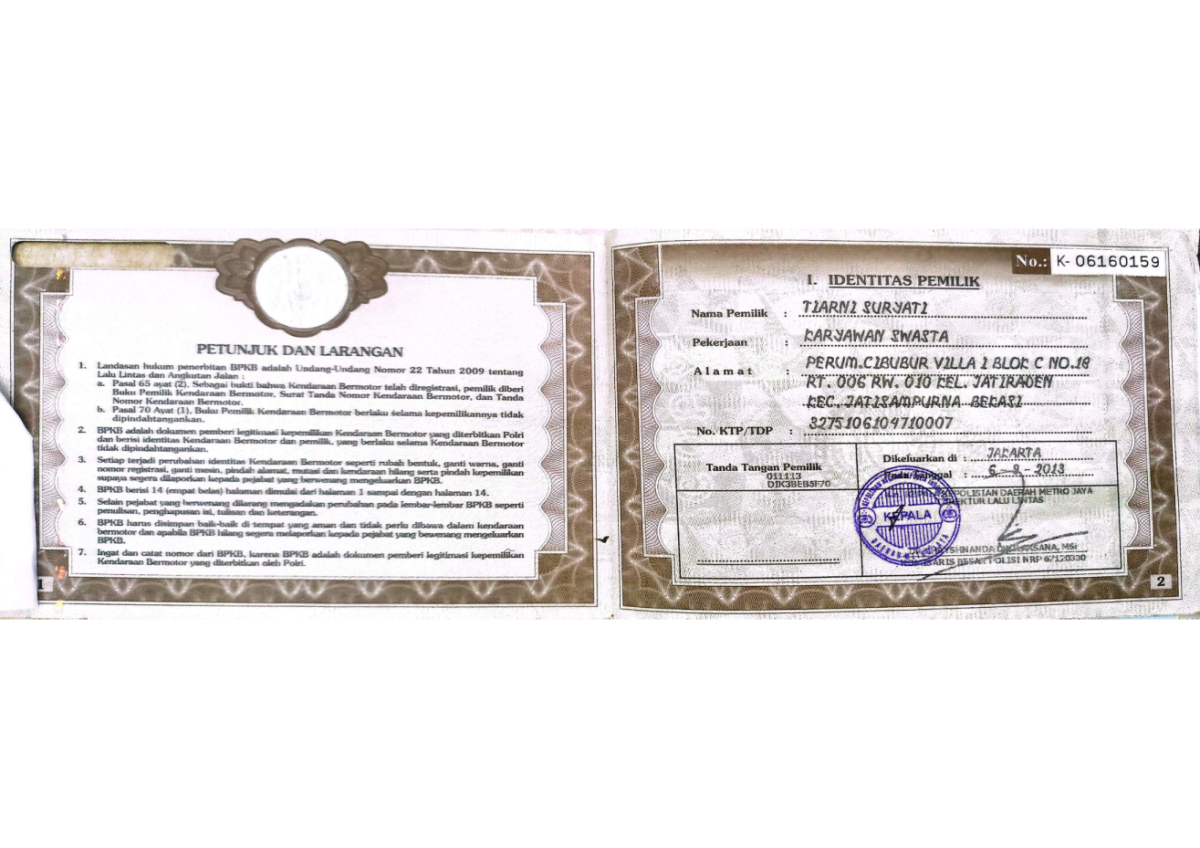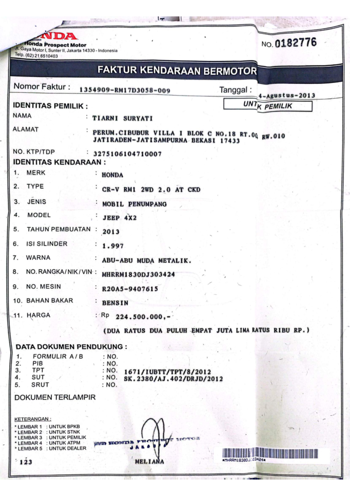 | No. Rangka | : | MHRRM1830DJ303424 |