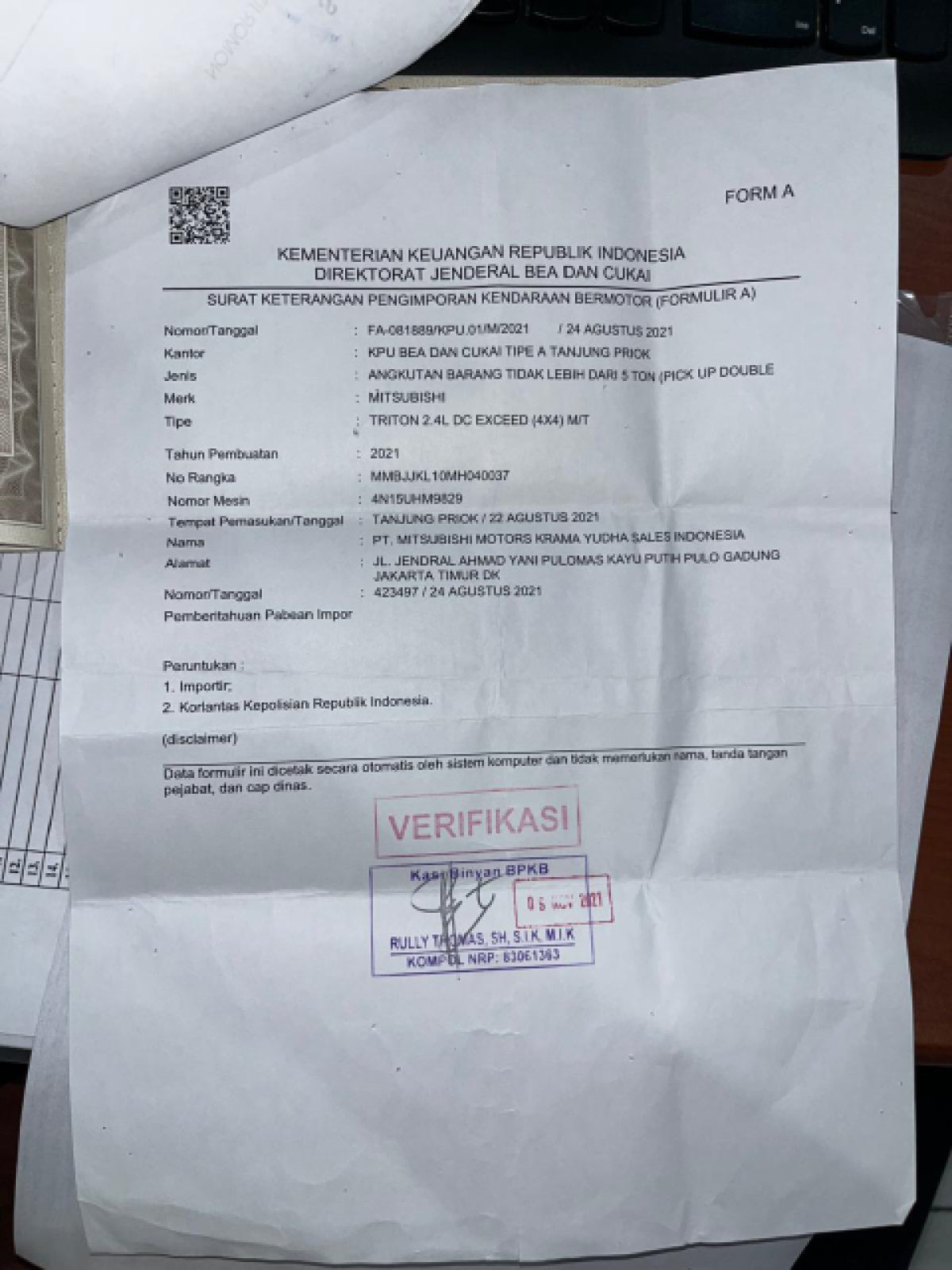 | Form A | : | Tidak Ada |