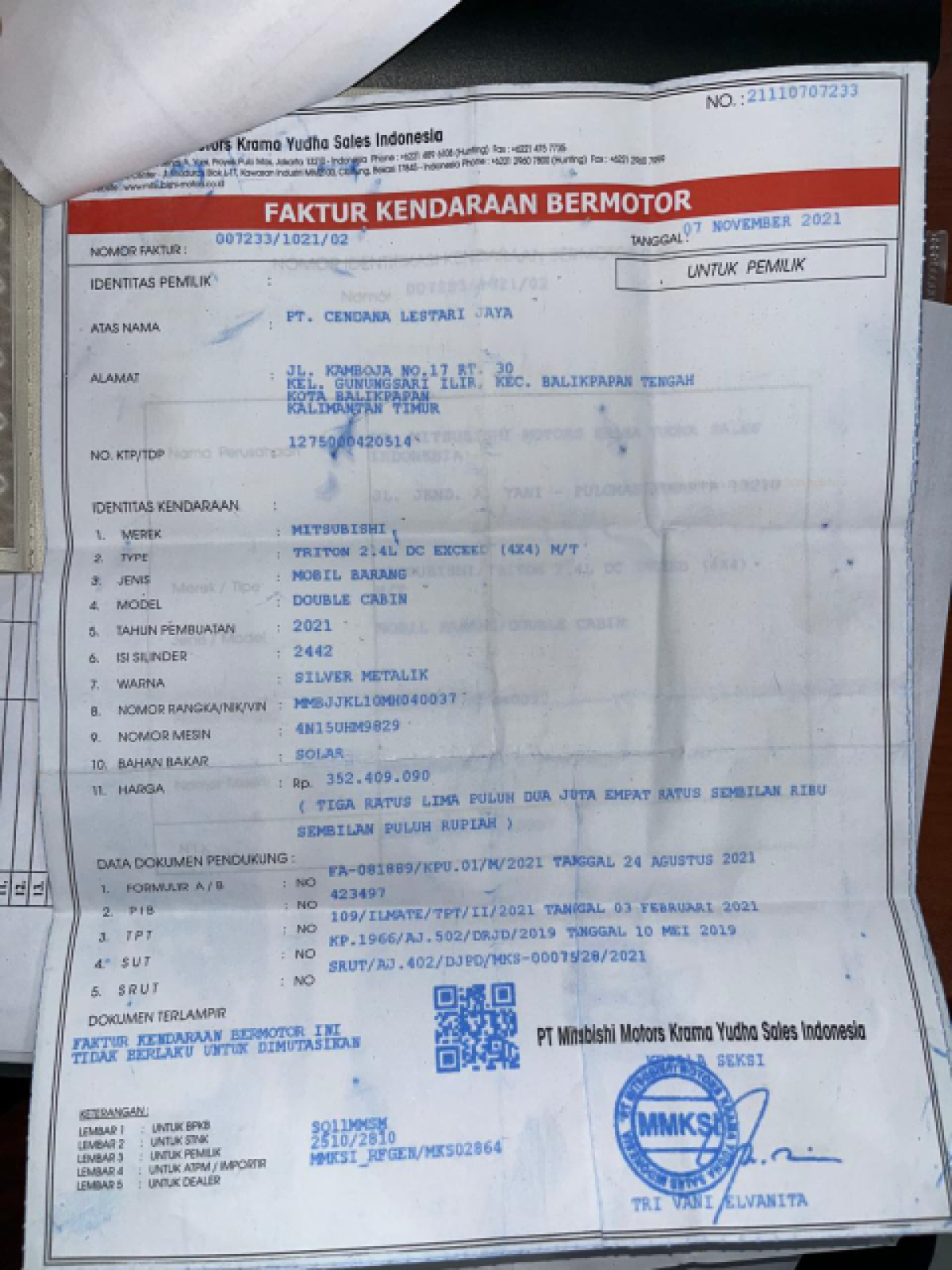 | KWT Blangko | : | Tidak Ada |