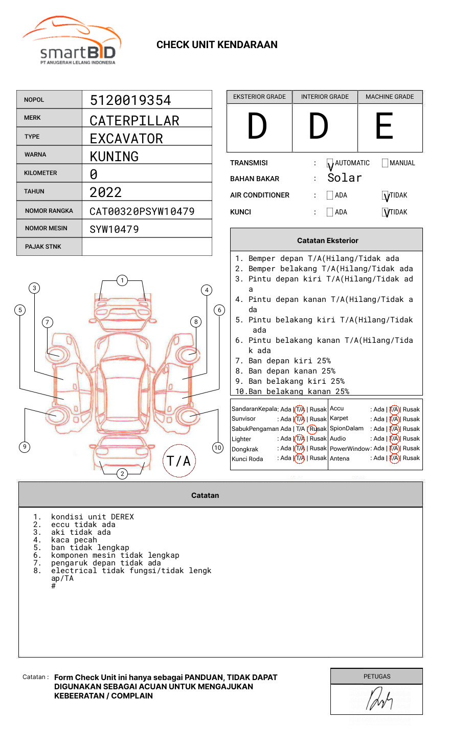 SEBELUM MELAKUKAN PENAWARAN UNIT PESERTA LELANG WAJIB MELAKUKAN PENGECEKAN UNIT DAN DOKUMEN TERLEBIH DAHULU // PIC AWAL +62 895-3231-57272 / ANDRI 085136886212 // UNIT DIKENAKAN BIAYA PPN 1.1% DARI HARGA TERBENTUK // ADA BIAYA ROYA FIDUCIA 100,000 DITANGGUNG PEMENANG