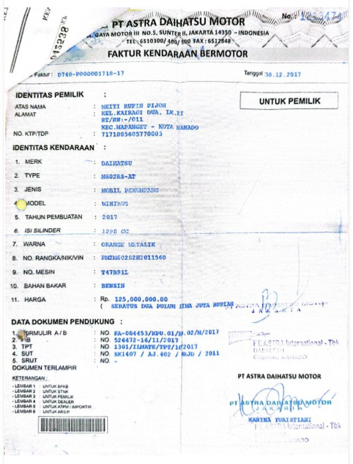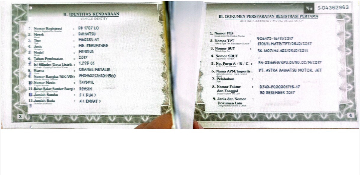 | No. Polisi | : | DB 1707 LO |