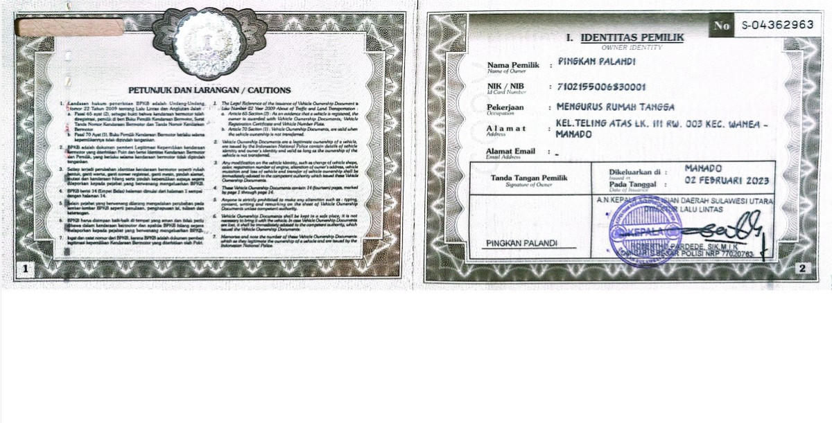 | STNK | : | Ada |