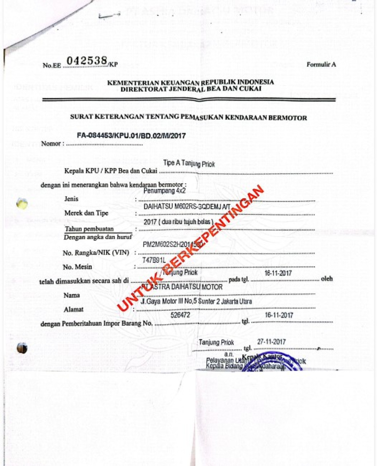 | KWT Blangko | : | Tidak Ada |