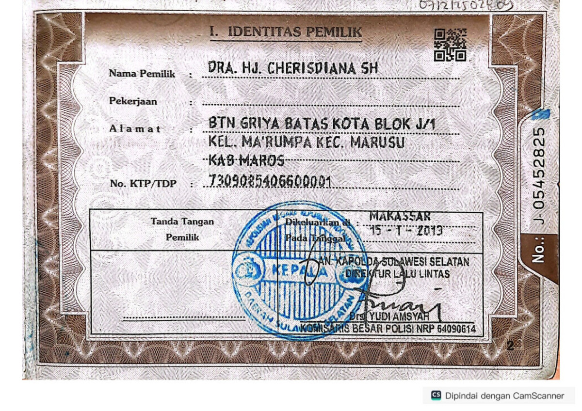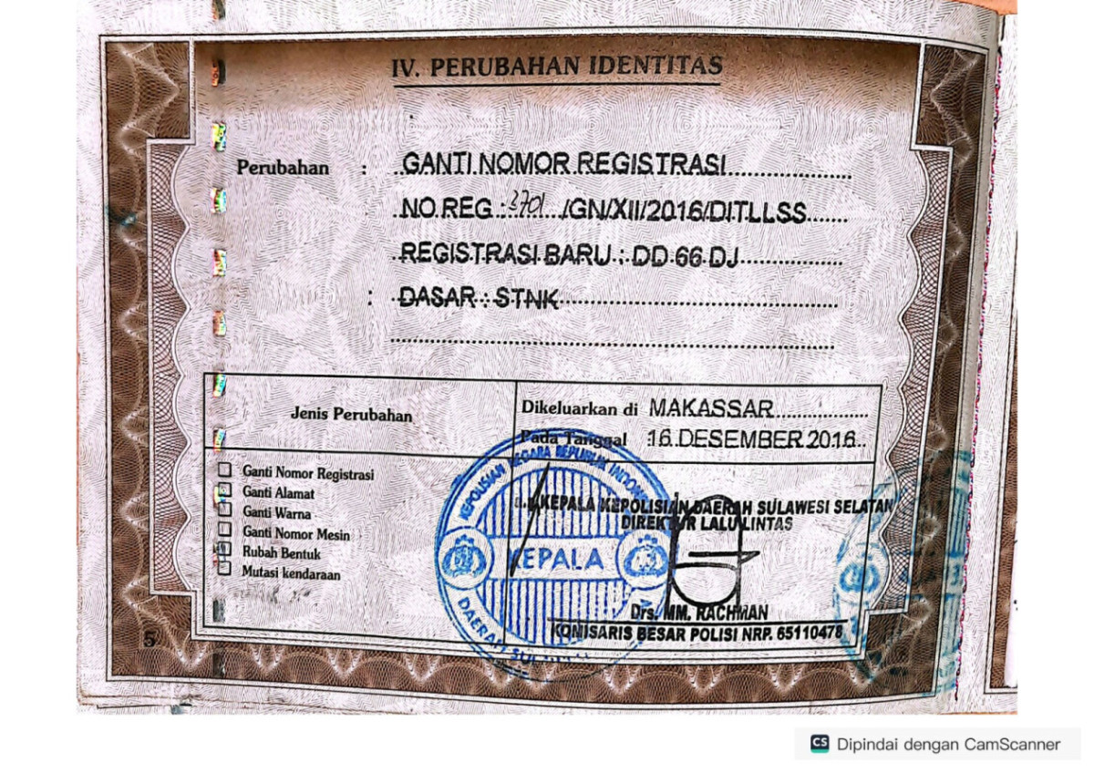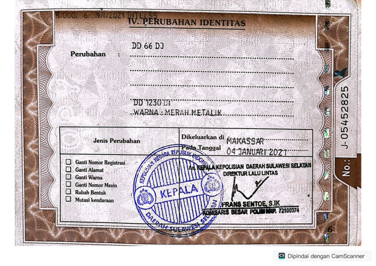 | No. Polisi | : | DD 1230 DT |
