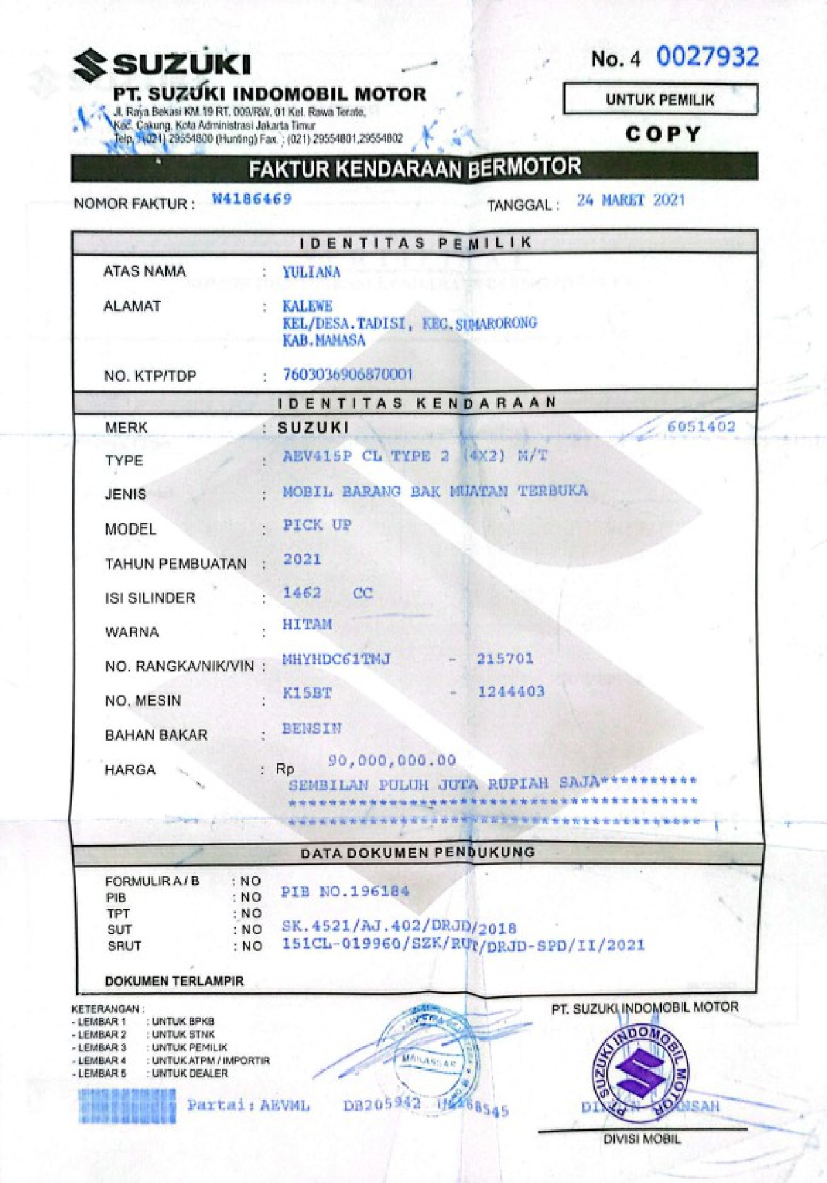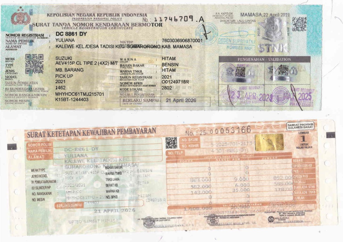 STNK BERUPA FOTO SCAN // UNIT TIDAK DILAKUKAN PENGECEKAN OLEH TIM SMARTBID// SEBELUM MELAKUKAN PENAWARAN HARAP CEK KONDISI UNIT DAN DOKUMEN TERLEBIH DAHULU// WAJIB MENGHUBUNGI PIC DAN DATANG KE LOKASI UNTUK PENGECEKAN UNIT// UNIT DILELANG APA ADANYA PERMASALAHAN YANG TIMBUL DILUAR TANGGUNG JAWAB SMARTBID// PENGAMBILAN UNIT SLIDE H+2 DARI PELUNASAN // JIKA INGIN MENGAMBIL UNIT HARAP UNTUK KONFIRMASI DAHULU KE SMARTBID // JIKA YANG MENGAMBIL BIDDER HARAP MEMBAWA KTP ASLI // JIKA PENGAMBILAN DIWAKILKAN WAJIB MEMBAWA SURAT KUASA ASLI // UNIT DIKENAKAN BIAYA PPN 1,1% DARI HARGA TERBENTUK// HUBUNGI PIC YESSI 0822-4933-3224 / INFORMASI LENGKAP UNIT HUB CS PUSAT 0811119678