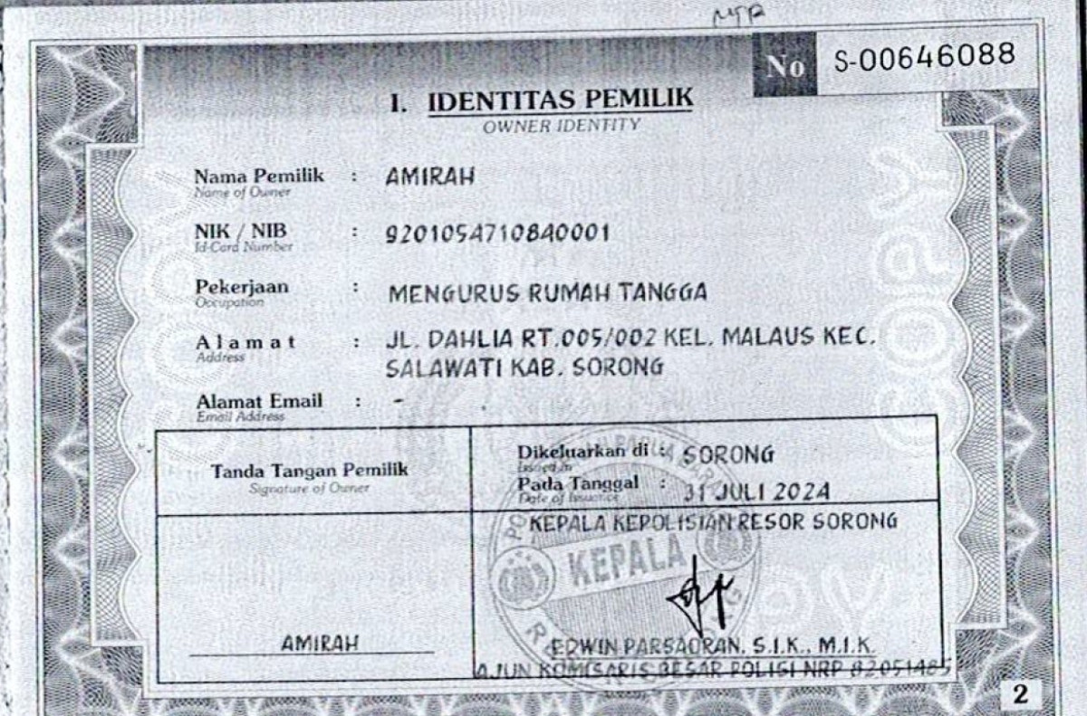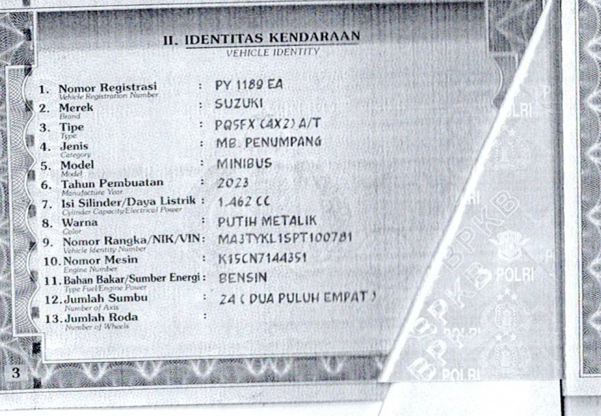 | No. Polisi | : | PY 1189 EA |