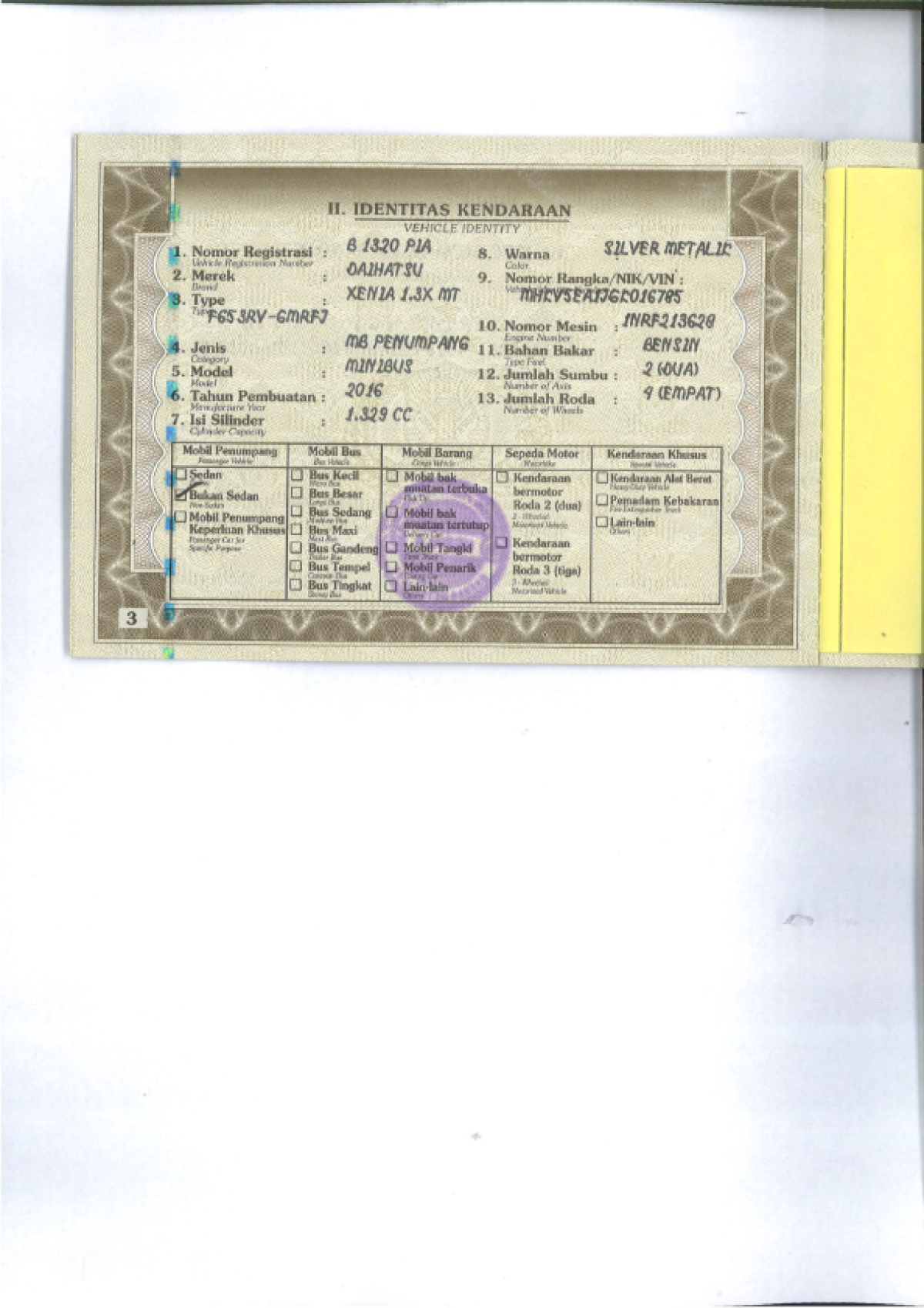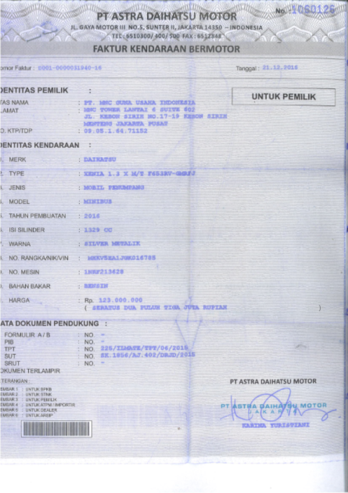 | No. Polisi | : | B 1320 PIA |