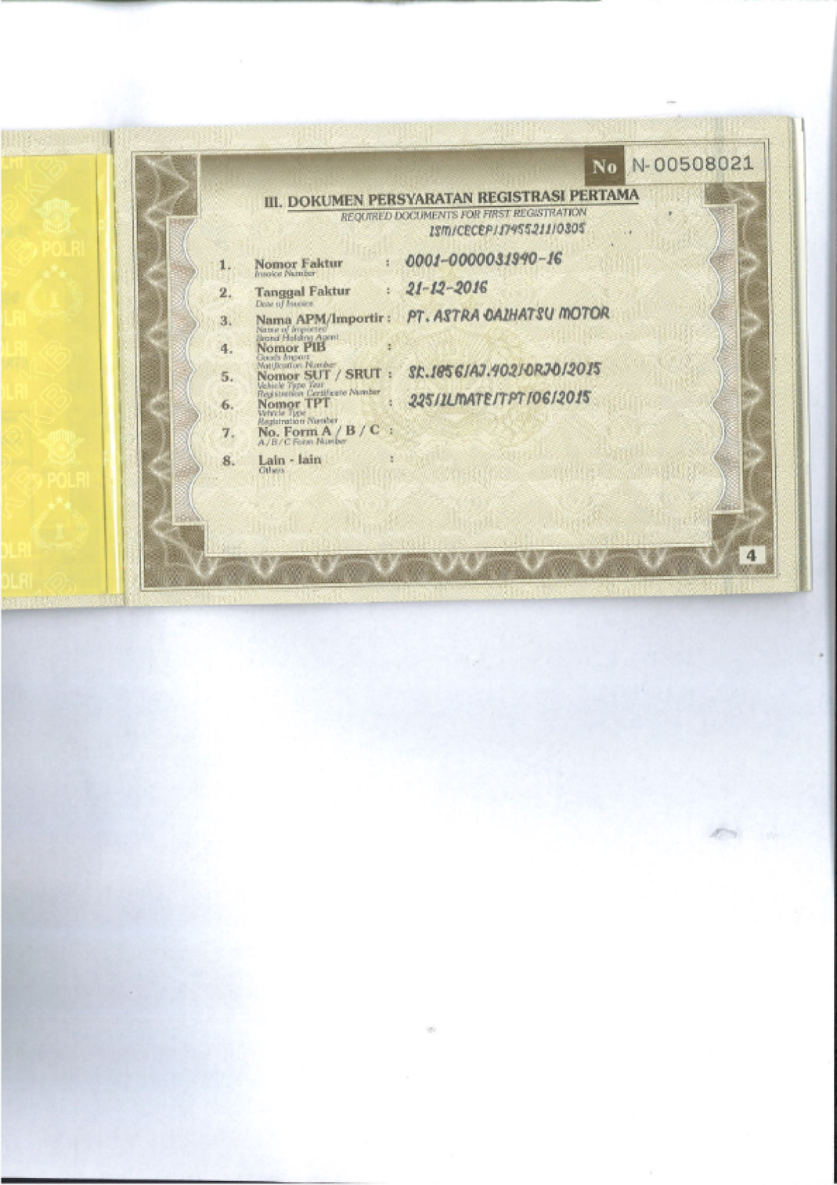 | KWT Blangko | : | Tidak Ada |