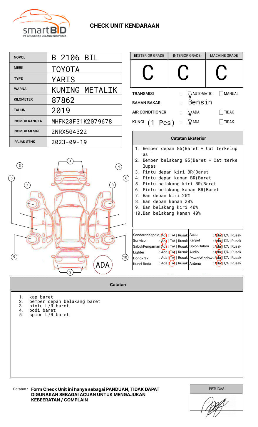SEBELUM MELAKUKAN PENAWARAN UNIT PESERTA LELANG WAJIB MELAKUKAN PENGECEKAN UNIT DAN DOKUMEN TERLEBIH DAHULU // PIC JEMY : 0852-5833-5777 // INSPEKSI AGUNG : 0852-3671-4592 //