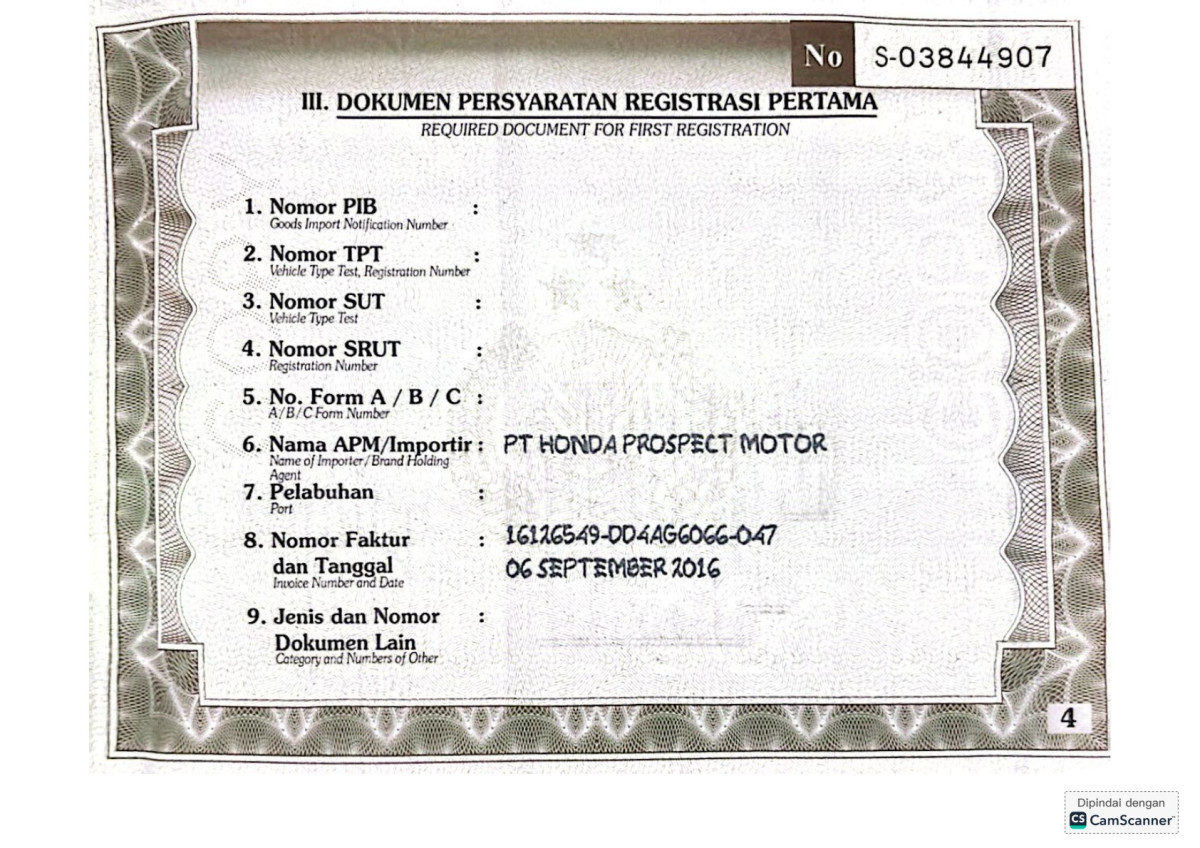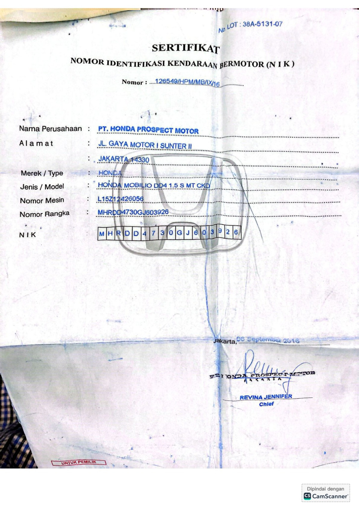 | No. Rangka | : | MHRDD4730GJ603926 |