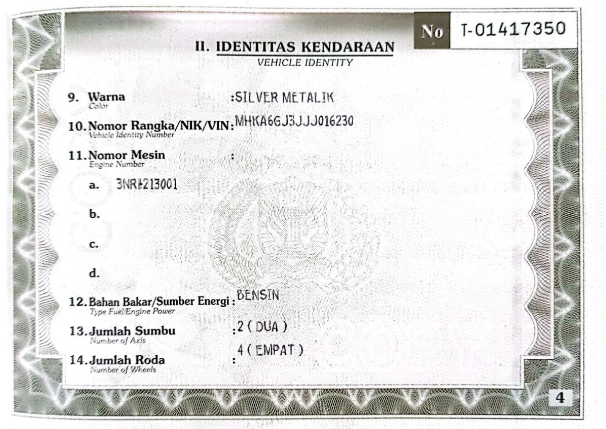 | No. Rangka | : | MHKA6GJ3JJJ016230 |