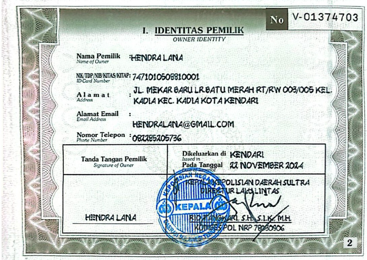 | STNK | : | Ada |