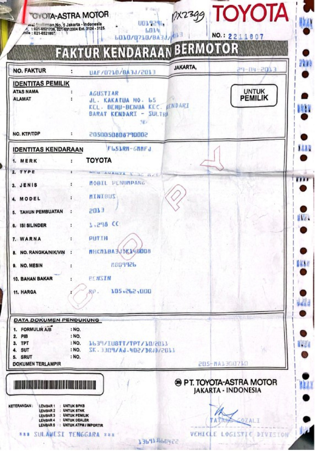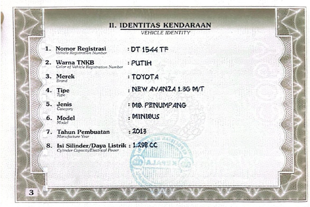 | No. Polisi | : | DT 1544 TF |