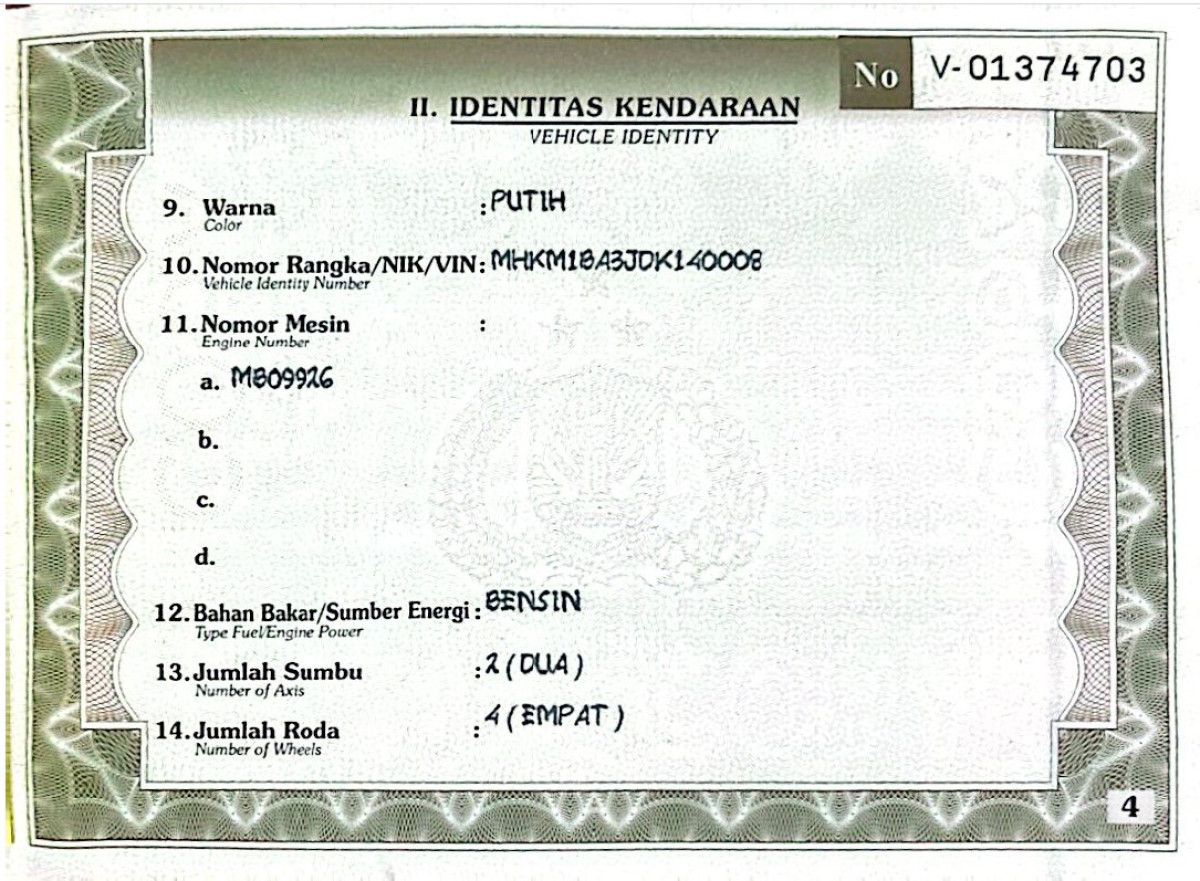 | No. Rangka | : | MHKM1BA3JDK140008 |