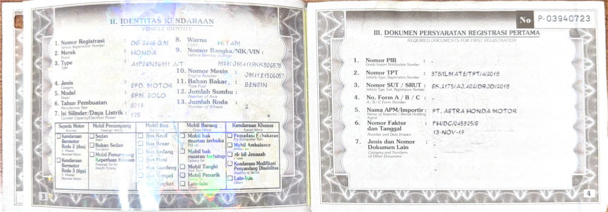 FOTO NOKA DAN NOSIN T/A // ADA PERBEDAAN NOPOL PADA FISIK DG2466 QM PADA DOKUMEN DG2446QM // UNIT TIDAK DILAKUKAN PENGECEKAN OLEH TIM SMARTBID// SEBELUM MELAKUKAN PENAWARAN HARAP CEK KONDISI UNIT DAN DOKUMEN TERLEBIH DAHULU// WAJIB MENGHUBUNGI PIC DAN DATANG KE LOKASI UNTUK PENGECEKAN UNIT// UNIT DILELANG APA ADANYA PERMASALAHAN YANG TIMBUL DILUAR TANGGUNG JAWAB SMARTBID// PENGAMBILAN UNIT SLIDE H+2 DARI PELUNASAN // JIKA INGIN MENGAMBIL UNIT HARAP UNTUK KONFIRMASI DAHULU KE SMARTBID // JIKA YANG MENGAMBIL BIDDER HARAP MEMBAWA KTP ASLI // JIKA PENGAMBILAN DIWAKILKAN WAJIB MEMBAWA SURAT KUASA ASLI // UNIT DIKENAKAN BIAYA PPN 1,1% DARI HARGA TERBENTUK// HUBUNGI PIC DAYSI 0813-5612-2033 / HUB CS PUSAT 0811119678