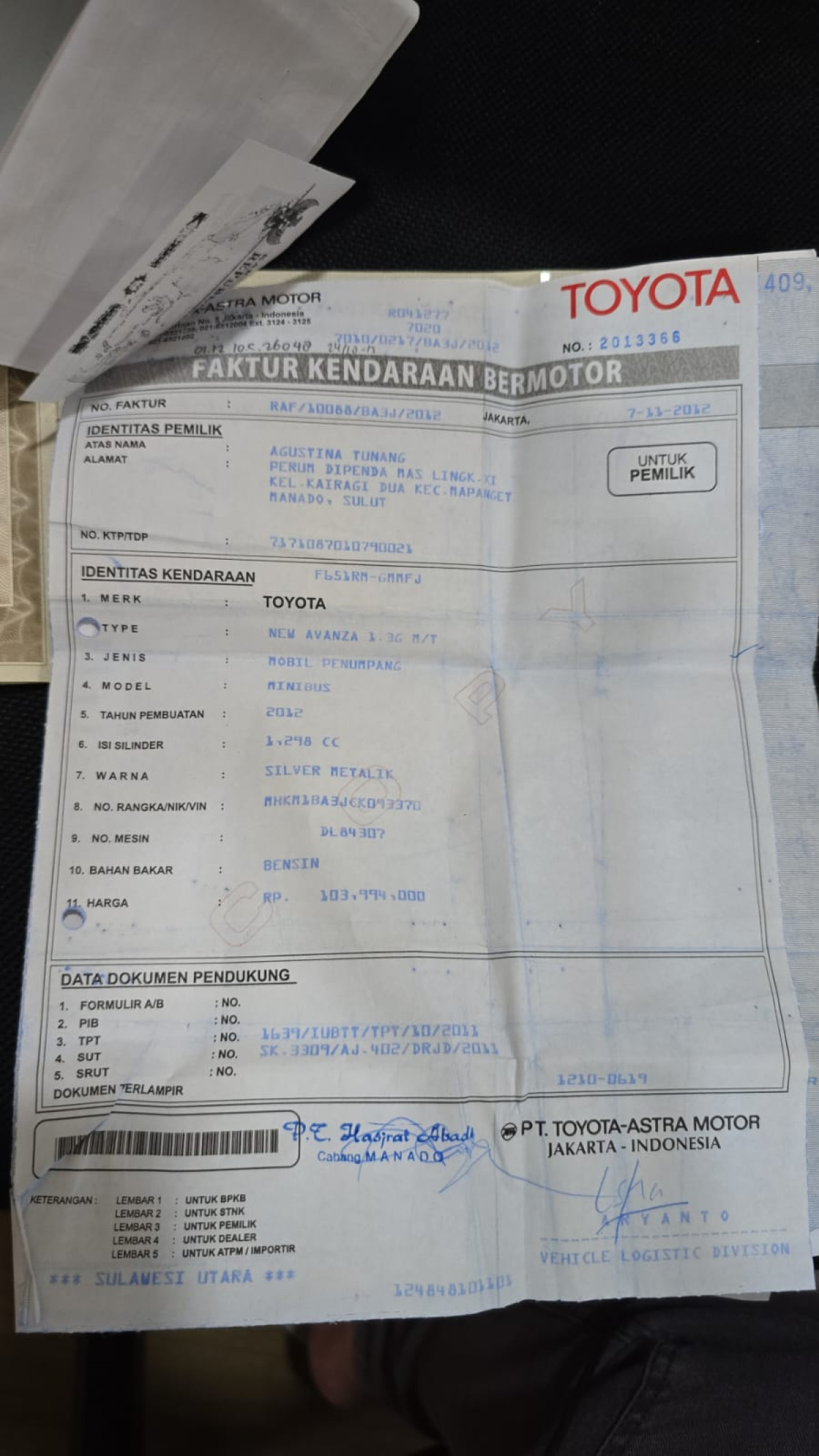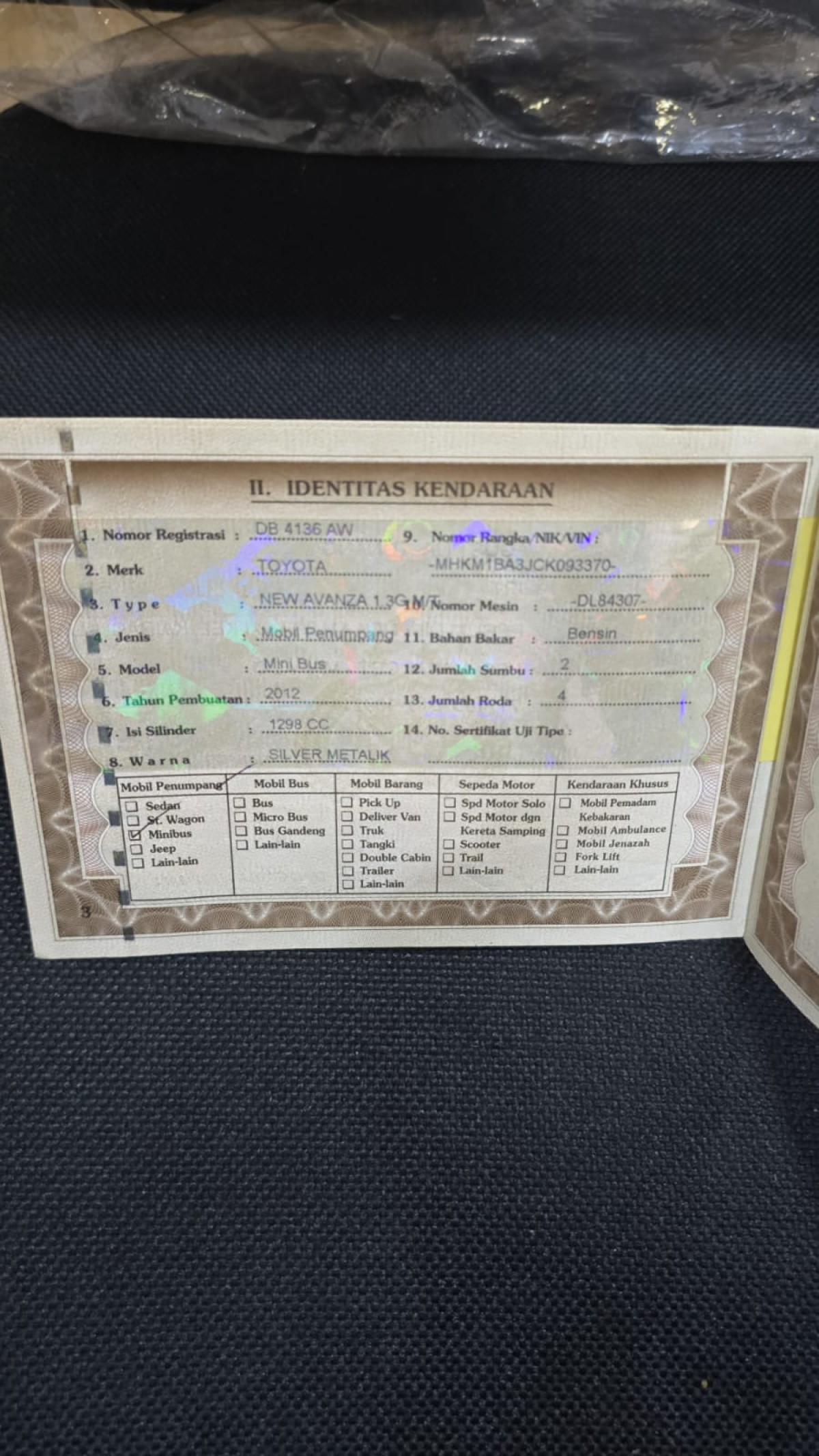 NOPOL PADA FISIK T/A // UNIT TIDAK DILAKUKAN PENGECEKAN OLEH TIM SMARTBID// SEBELUM MELAKUKAN PENAWARAN HARAP CEK KONDISI UNIT DAN DOKUMEN TERLEBIH DAHULU// WAJIB MENGHUBUNGI PIC DAN DATANG KE LOKASI UNTUK PENGECEKAN UNIT// UNIT DILELANG APA ADANYA PERMASALAHAN YANG TIMBUL DILUAR TANGGUNG JAWAB SMARTBID// PENGAMBILAN UNIT SLIDE H+2 DARI PELUNASAN // JIKA INGIN MENGAMBIL UNIT HARAP UNTUK KONFIRMASI DAHULU KE SMARTBID // JIKA YANG MENGAMBIL BIDDER HARAP MEMBAWA KTP ASLI // JIKA PENGAMBILAN DIWAKILKAN WAJIB MEMBAWA SURAT KUASA ASLI // UNIT DIKENAKAN BIAYA PPN 1,1% DARI HARGA TERBENTUK// LOKASI UNIT HUBUNGI Bpk. Reza 0822-3372-2415 / CS PUSAT 081188089292// Kondisi mesin rusak, transmisi terbongkar tidak lengkap, propelar copot, mesin ex bongkaran dan tidak lengkap, body penyok, cat kusam, interior kotor, headrest t/a, doortrimp belakang t/a, stir terbongkar, lampu kusam, nopol t/a, velg repaint.//Dynamo Starter | Engine Services (Heavy) | Rim (Fr-L) | Gear box Overhaul | Tire (spare) | Tire (Rr-R) | Rim (Fr-R) | Tire (Rr-L) | Rim (Rr-L) | Wheel Bearing (Rr) | Rack Steer | Disc Pad | Tire (Fr-R) | Shocbreakers (Rr) | Muffler | Clutch Plate | Tire (Fr-L) | Shocbreakers (Fr) | L-Apron | Brake Master | Radiator | Engine Mounting | Fan Belt | Injector | Radiator Fan | Brake Pad (Fr) | Battery | Brake Pad (Rr) | Clutch Bearing | Spark Plug(s) | Wheel Bearing (Fr) | Aircon Evaporator/Carseat (Fr-L) | Carseat (Fr-R) | Head Unit | Carpet Floor (RR) | Carpet | Headrest (M-L) | Steering-wheel | Door Trim (Trunk) | Bolt Crane and Jack | Interior Saloon | Tool Kit | Carpet Floor (FR-L) | Carpet Floor (Mid) | Carpet Floor (FR-R) | Headrest (Fr-R) | Headrest (M-R) | Headrest (Fr-L)/Fog Lamp (R ) | License Plate | Fog Lamp (L) | Headlight (Fr-L) | Door Repair (Rr-L) | Turn Lamp (Fr-R) | Turn Lamp (Fr-L) | Headlight (Fr-R) | Roof Repair | Door Repair (Trunk) | Bumper Repair (Rr) | Door Repair (Rr-R) | Engine Hood Repair | Fender Repair (Fr-R) | Door Repair (Fr-R) | Taillight (Rr-L) | Taillight (Rr-R) | Bumper Repair (Fr) | Turn Lamp (Rr-L) | Turn Lamp (Rr-R) | Door Repair (Fr-L) | Fender Repair (Fr-L)
