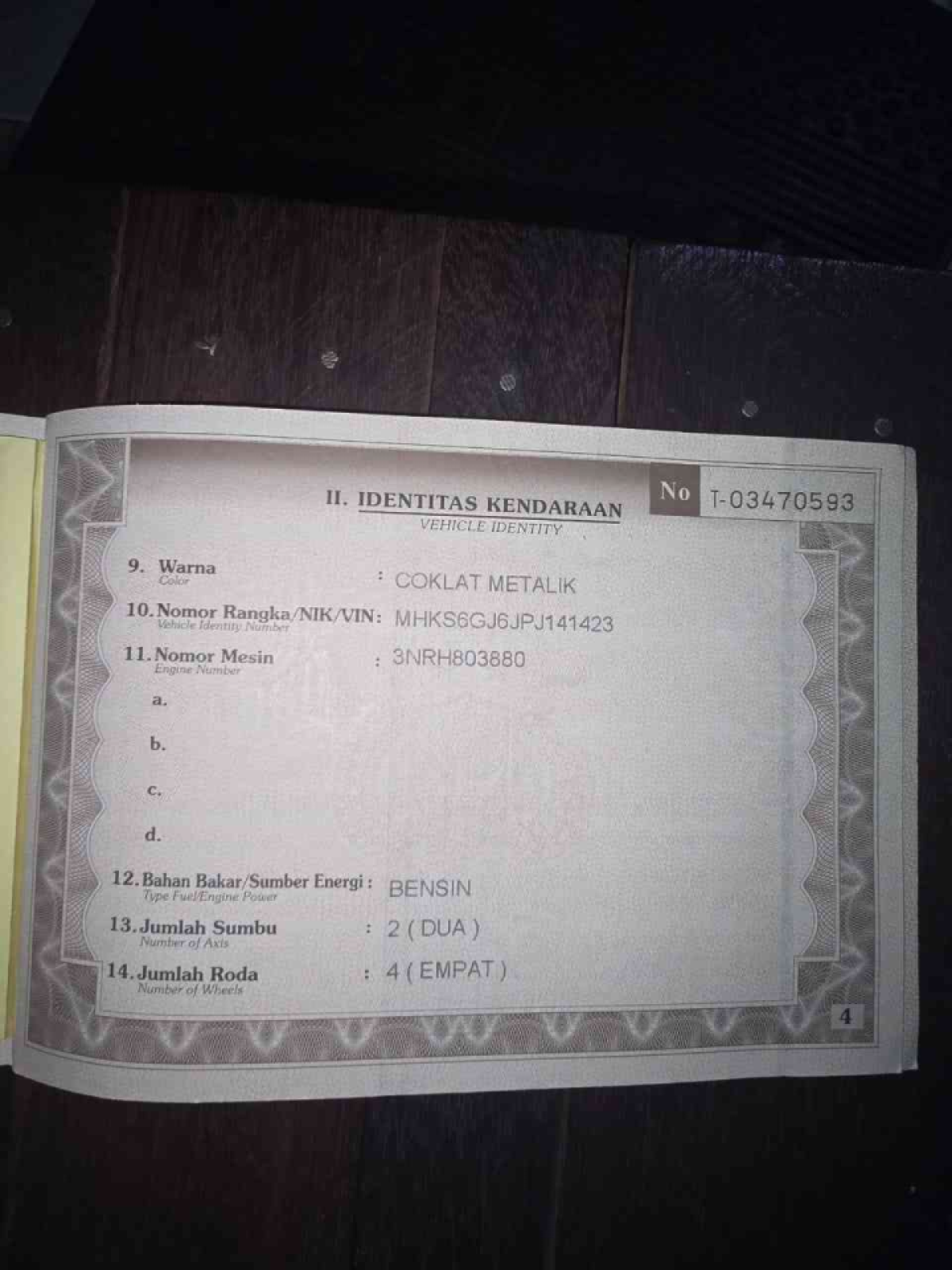 | No. Rangka | : | MHKS6GJ6JPJ141423 |