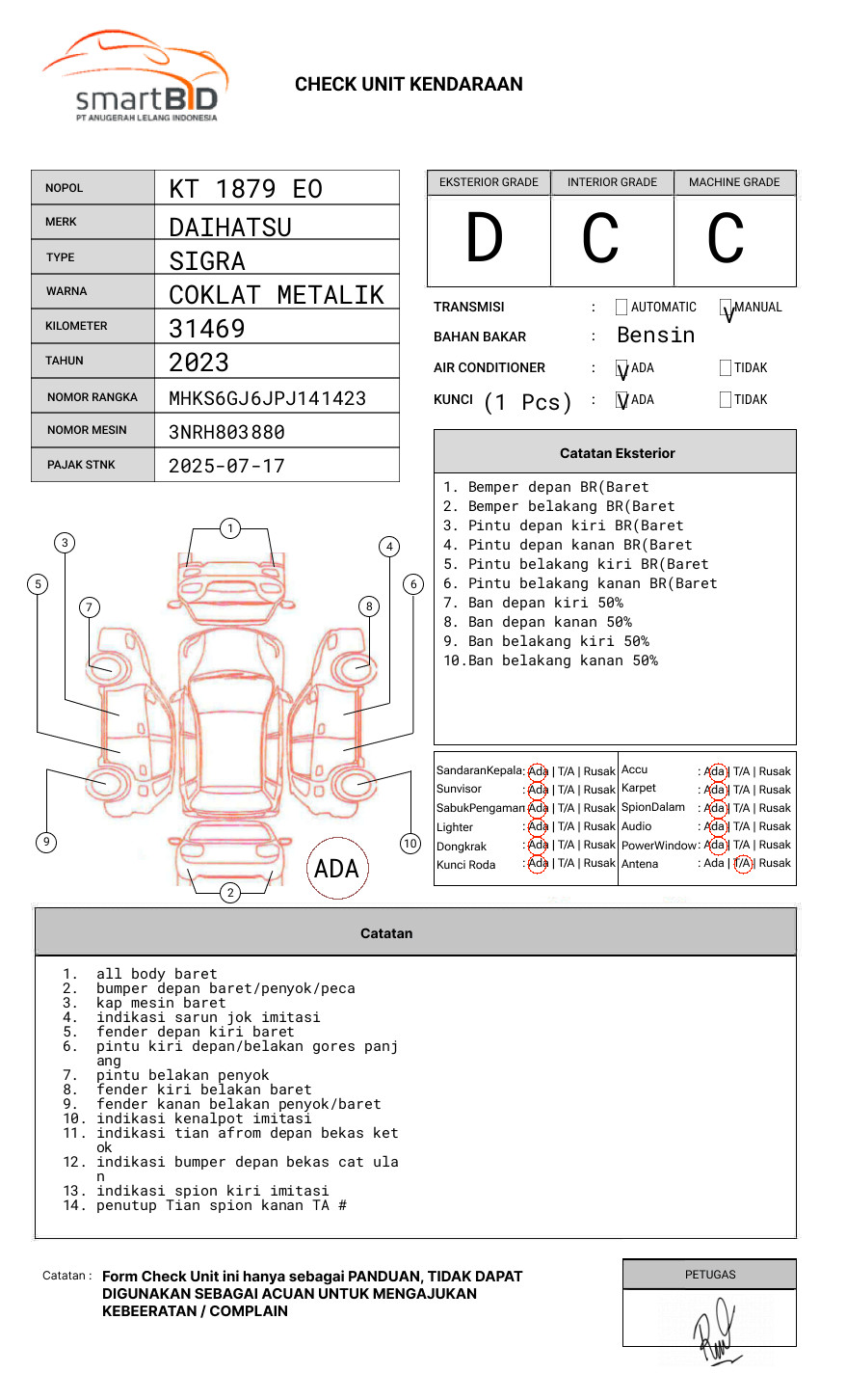 SEBELUM MELAKUKAN PENAWARAN UNIT PESERTA LELANG WAJIB MELAKUKAN PENGECEKAN UNIT DAN DOKUMEN TERLEBIH DAHULU // PIC MIRZA : 0822-3357-3376 / PIC RESKI 0853-4884-2551 // UNIT DIKENAKAN BIAYA PPN 1.1% DARI HARGA TERBENTUK //