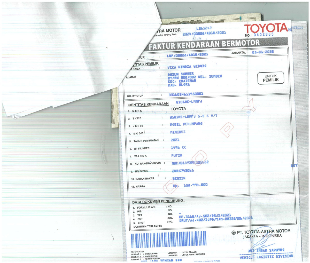 | KWT Blangko | : | Tidak Ada |