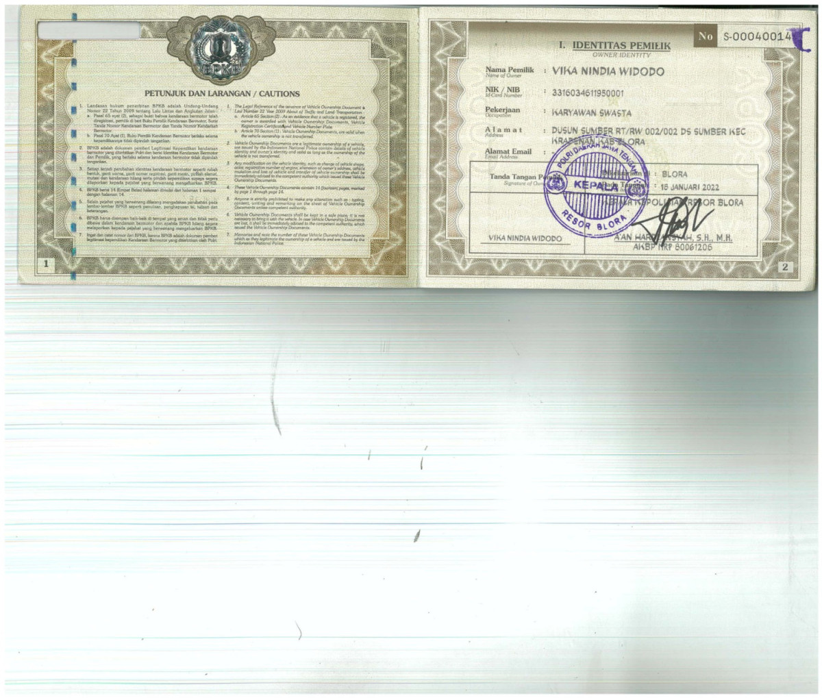 | STNK | : | Tidak Ada |