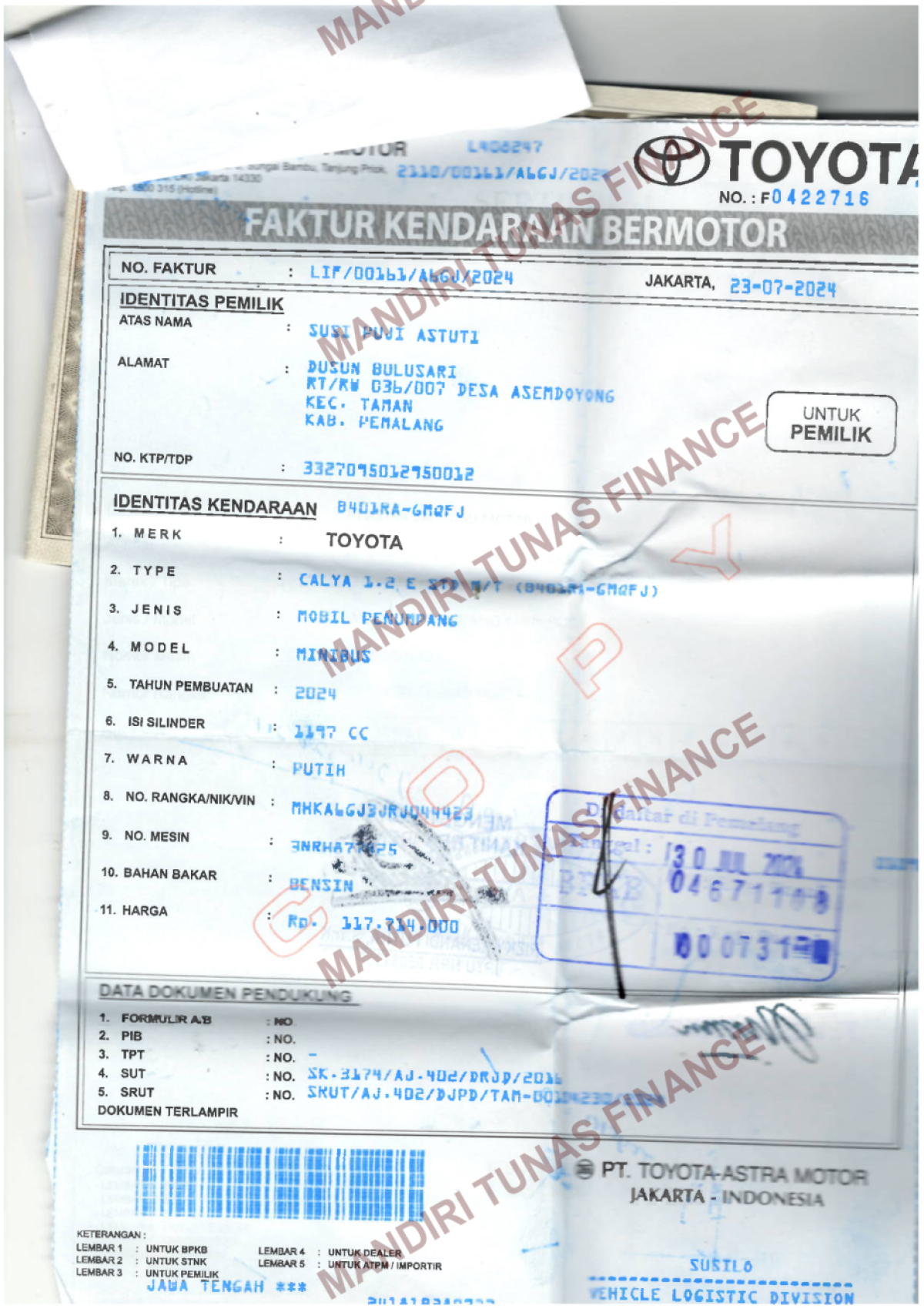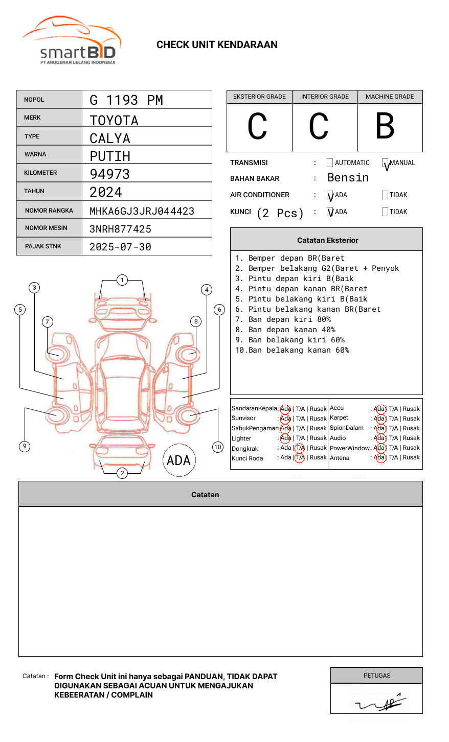 SEBELUM MELAKUKAN PENAWARAN UNIT PESERTA LELANG WAJIB MELAKUKAN PENGECEKAN UNIT DAN DOKUMEN TERLEBIH DAHULU // PIC ERVAN 081353402514 // UNIT DIKENAKAN BIAYA PPN 1.1% DARI HARGA TERBENTUK //UNIT DIKENAKAN BIAYA ROYA FIDUSIA 100.000