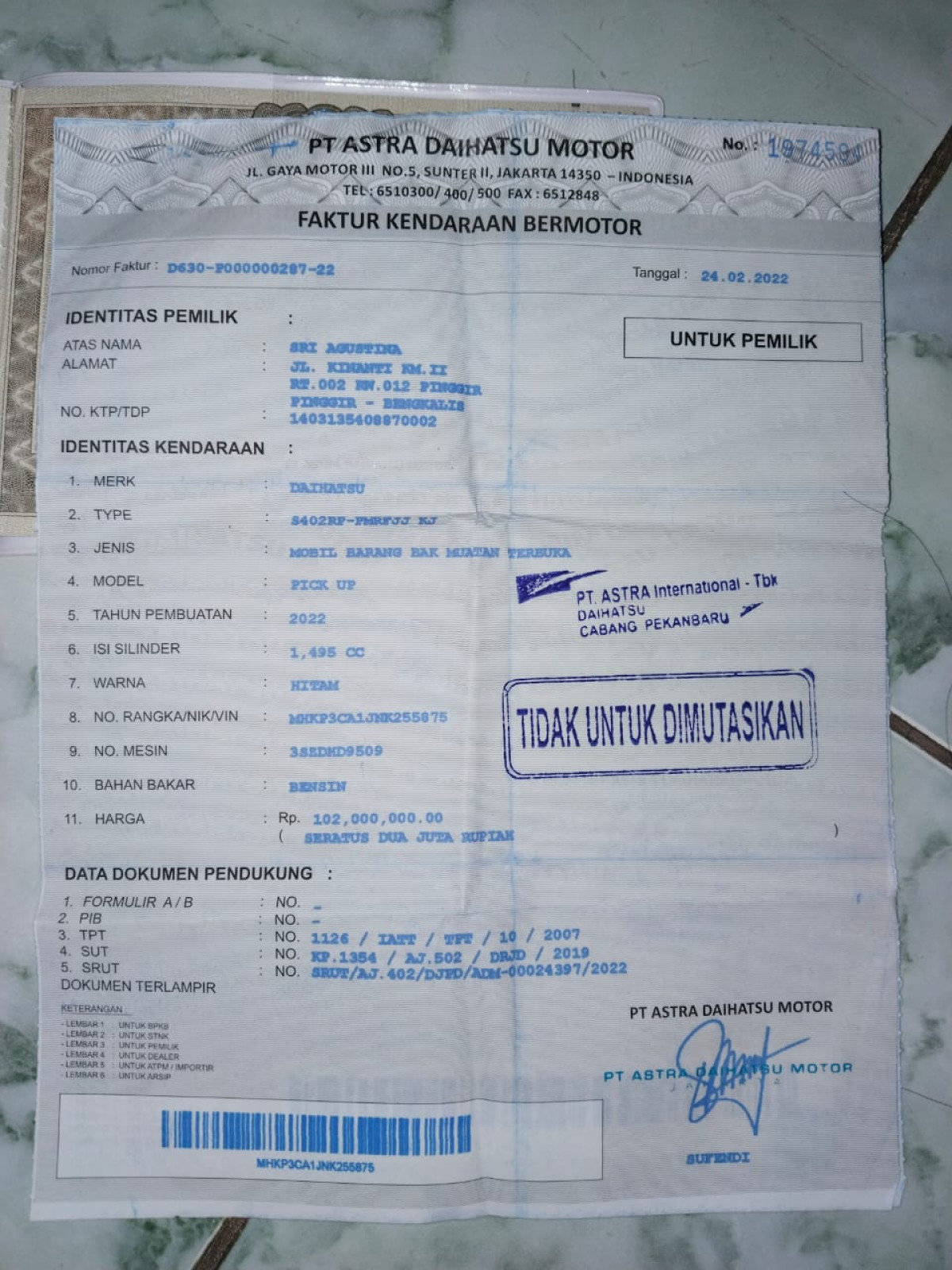 UNIT TIDAK DILAKUKAN PENGECEKAN OLEH TIM SMARTBID// SEBELUM MELAKUKAN PENAWARAN HARAP CEK KONDISI UNIT DAN DOKUMEN TERLEBIH DAHULU// WAJIB MENGHUBUNGI PIC DAN DATANG KE LOKASI UNTUK PENGECEKAN UNIT// UNIT DILELANG APA ADANYA PERMASALAHAN YANG TIMBUL DILUAR TANGGUNG JAWAB SMARTBID// PENGAMBILAN UNIT SLIDE H+2 DARI PELUNASAN // JIKA INGIN MENGAMBIL UNIT HARAP UNTUK KONFIRMASI DAHULU KE SMARTBID // JIKA YANG MENGAMBIL BIDDER HARAP MEMBAWA KTP ASLI // JIKA PENGAMBILAN DIWAKILKAN WAJIB MEMBAWA SURAT KUASA ASLI // UNIT DIKENAKAN BIAYA PPN 1,1% DARI HARGA TERBENTUK// LOKASI UNIT HUBUNGI CS PUSAT 081188089292// ALL BODI BARET, LANTAI BAK BERGELOMBANG, PINTU BAK TIDAK PRESISI, LAMPU BELAKANG KANAN KIRI T/A, INTERIOR KOTOR, SARUNG JOK SOBEK, DOORTRIM KANAN KIRI SOBEK.//Tire (Fr-R) | Gasket Cover Head | Tire (spare) | Key (no immobilizer) | Coil Ignition | Wheel Bearing (Fr) | Spring (FR) | Header | Tire (Rr-L) | Shocbreakers (Fr) | Engine Services (Light) | Fuel Pump | Air Filter | Engine Block Head | Rack Steer | Clutch Plate | Brake Master | Shocbreakers (Rr) | Spring (RR) | Fan Belt | Radiator Fan | Spark Plug(s) | Wheel Axels (Rr) | Battery | Wheel Bearing (Rr) | Tire (Fr-L) | Wheel Axels (Fr) | Brake Pad (Fr) | Tire (Rr-R) | Gasket Cylinder Head | Brake Pad (Rr)/Carpet | Ceiling Trim | Ceiling Lamp (Fr) | Bolt Crane and Jack | Glass Lever (Drv) | Fr-R Door Lock | Door Trim (Fr-L) | Tool Kit | Glass Lever (Fr-L) | Interior Saloon | Fr-L Door Lock | Door Trim (Fr-R)/Rim cover (Rr-R) | Cargo Panel Repair (Deck) | Turn Lamp (Rr-R) | Fender Repair (Fr-L) | Rim cover (Fr-L) | Bumper Repair (Rr) | Door Repair (Fr-R) | Rim cover (Fr-R) | Door Repair (Fr-L) | Cargo Panel Repair (Rr) | Roof Repair | Turn Lamp (Rr-L) | Taillight (Rr-L) | Rim cover (Rr-L) | Fender Repair (Fr-R) | Front Panel Repair | Bumper Repair (Fr) | Taillight (Rr-R)
