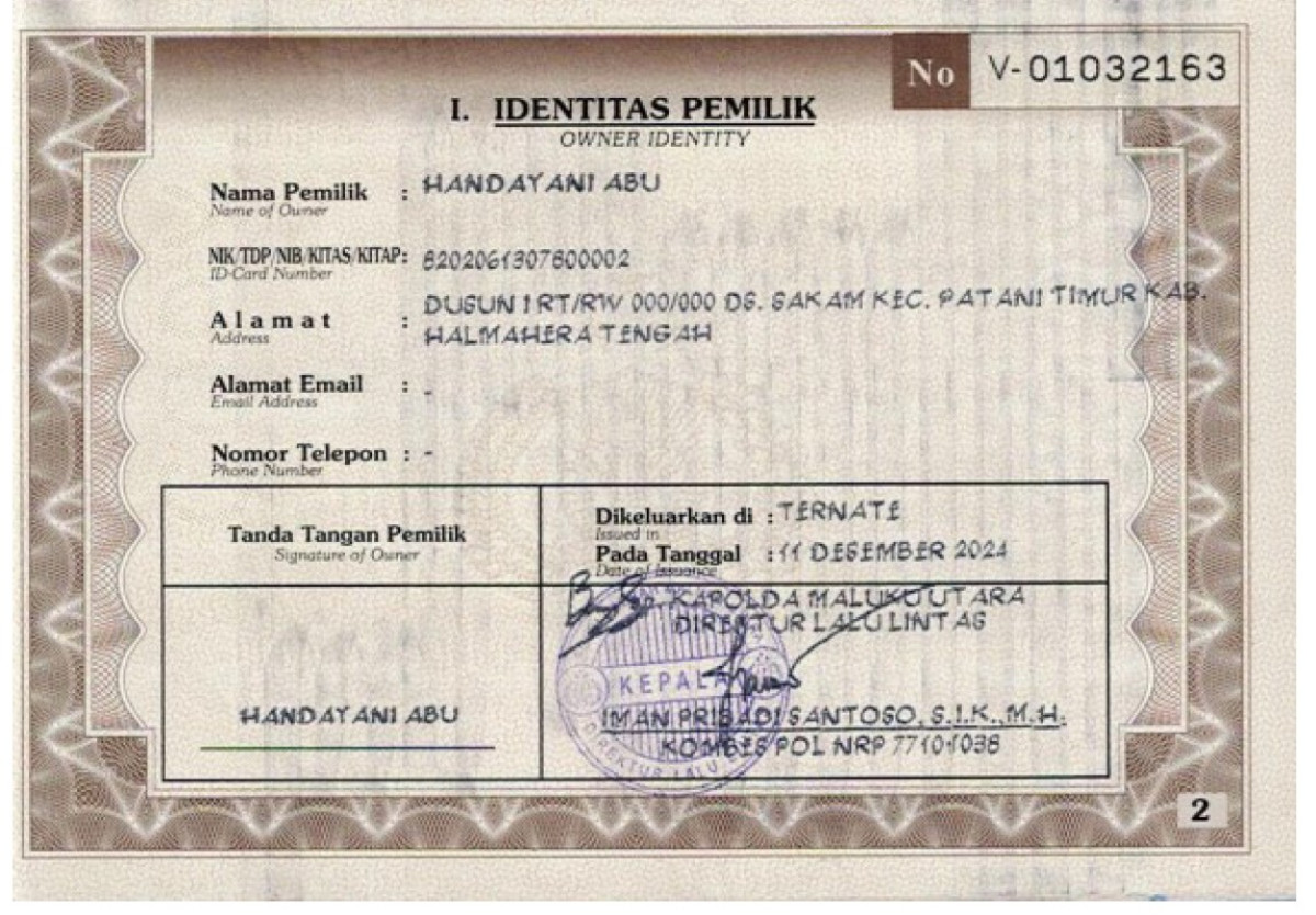 | STNK | : | Tidak Ada |