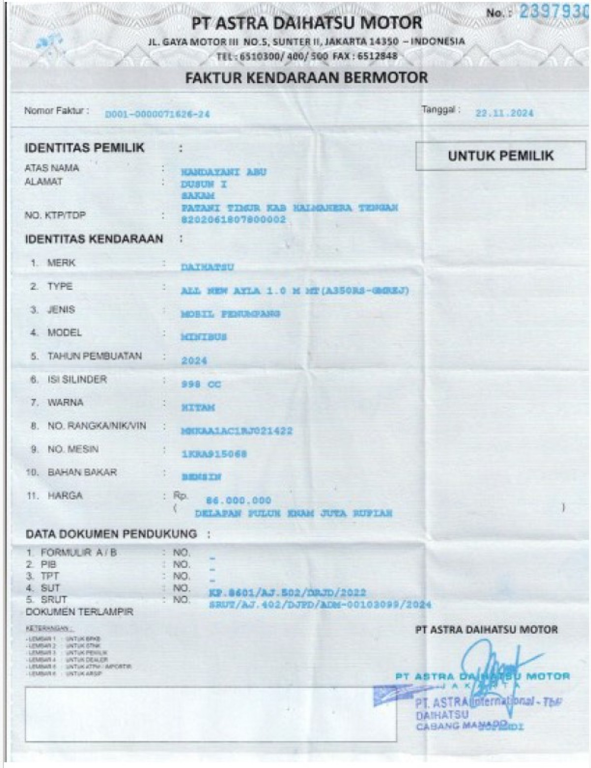 | KWT Blangko | : | Tidak Ada |