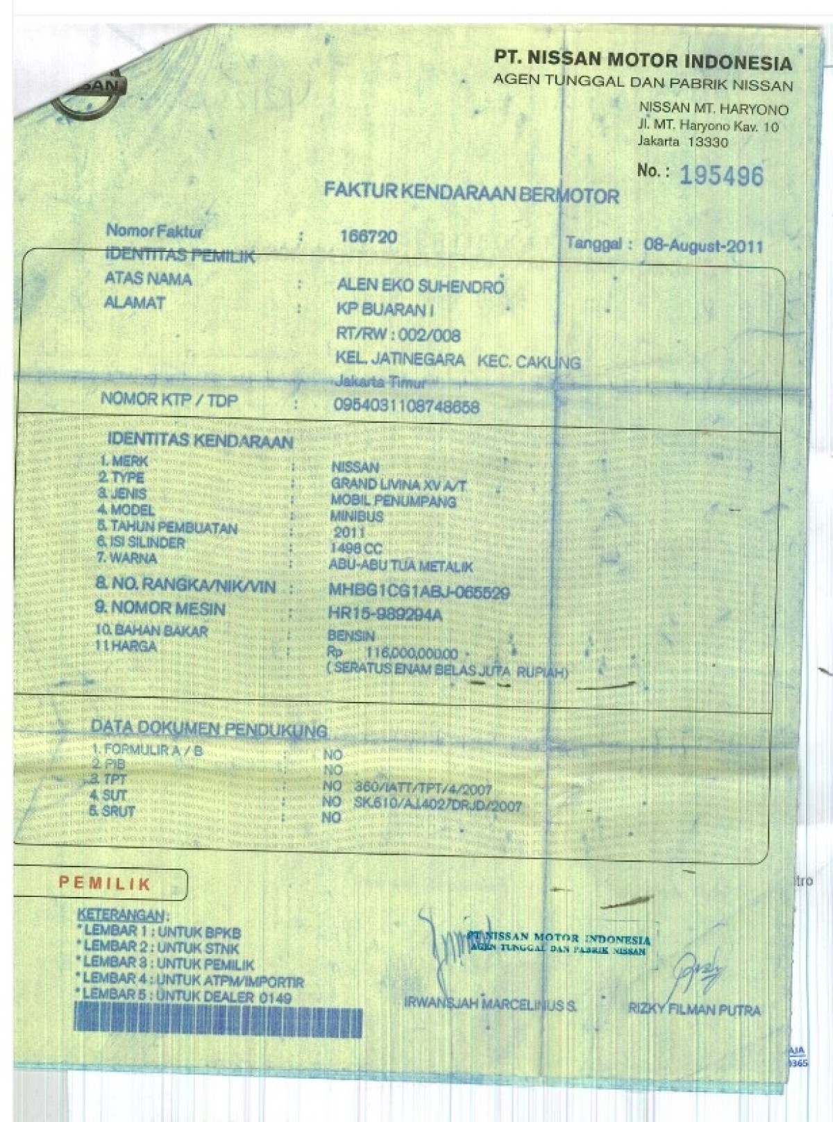 | STNK | : | Tidak Ada |