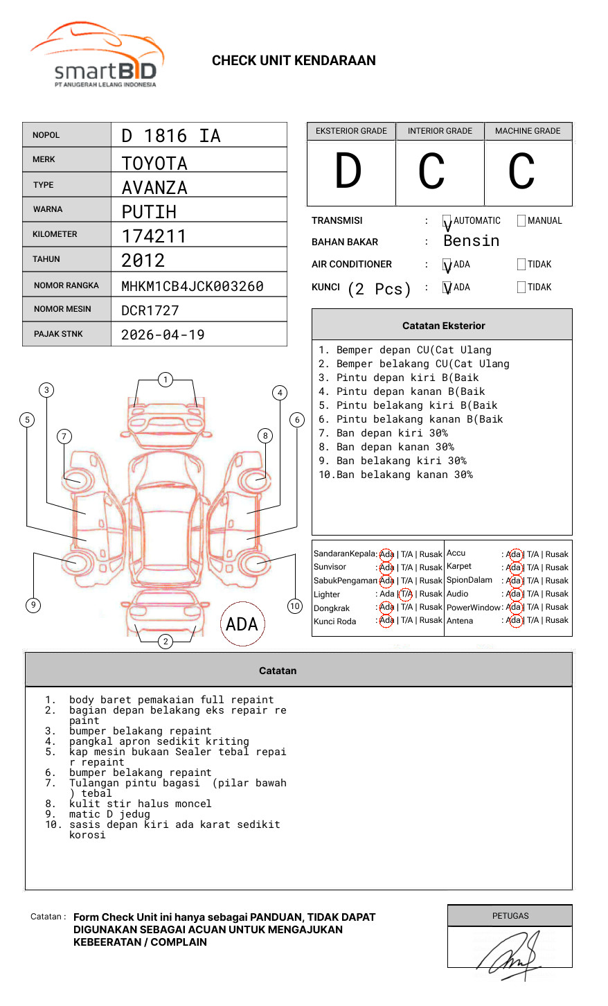 SEBELUM MELAKUKAN PENAWARAN HARAP CEK KONDISI UNIT SERTA DOKUMEN TERLEBIH DAHULU// KET E-SAMSAT "TELAH LEPAS KEPEMILIKKAN"// FAKTUR FOTOCOPY'AN// BEBERAPA PENULISAN KET. PADA FAKTUR PUDAR// PIC MAS UD : 081213061687