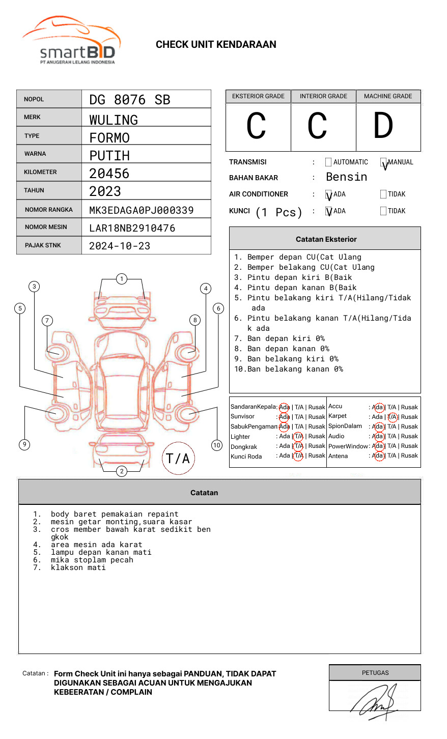 SEBELUM MELAKUKAN PENAWARAN HARAP CEK KONDISI UNIT SERTA DOKUMEN TERLEBIH DAHULU// SOFTCOPY BPKB TA// UNIT TIDAK DAPAT DILAKUKAN CEK E-SAMSAT (PENAWAR WAJIB MENGECEK TERLEBIH DAHULU)// PIC MAS UD : 081213061687