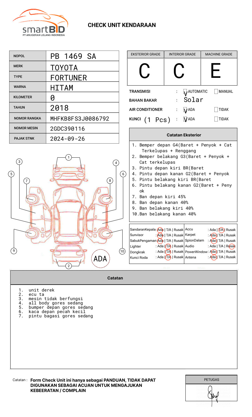 SEBELUM MELAKUKAN PENAWARAN HARAP CEK KONDISI UNIT SERTA DOKUMEN TERLEBIH DAHULU//PIC ANDY : 62 819-1822-5889// COPY BPKB DAN FAKTUR TA.
