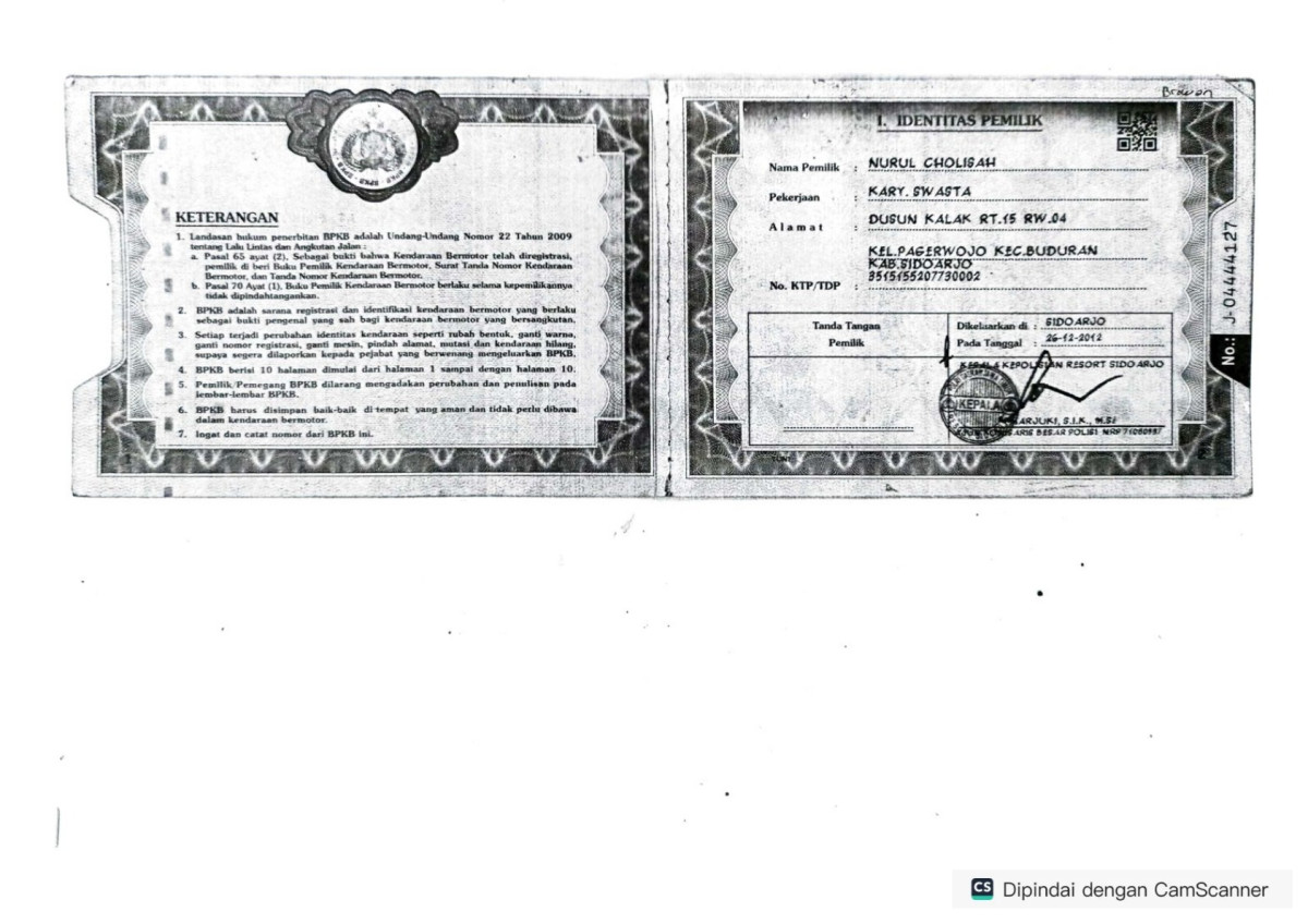 No. Rangka | : | MHCNK71LYCJ040847 |