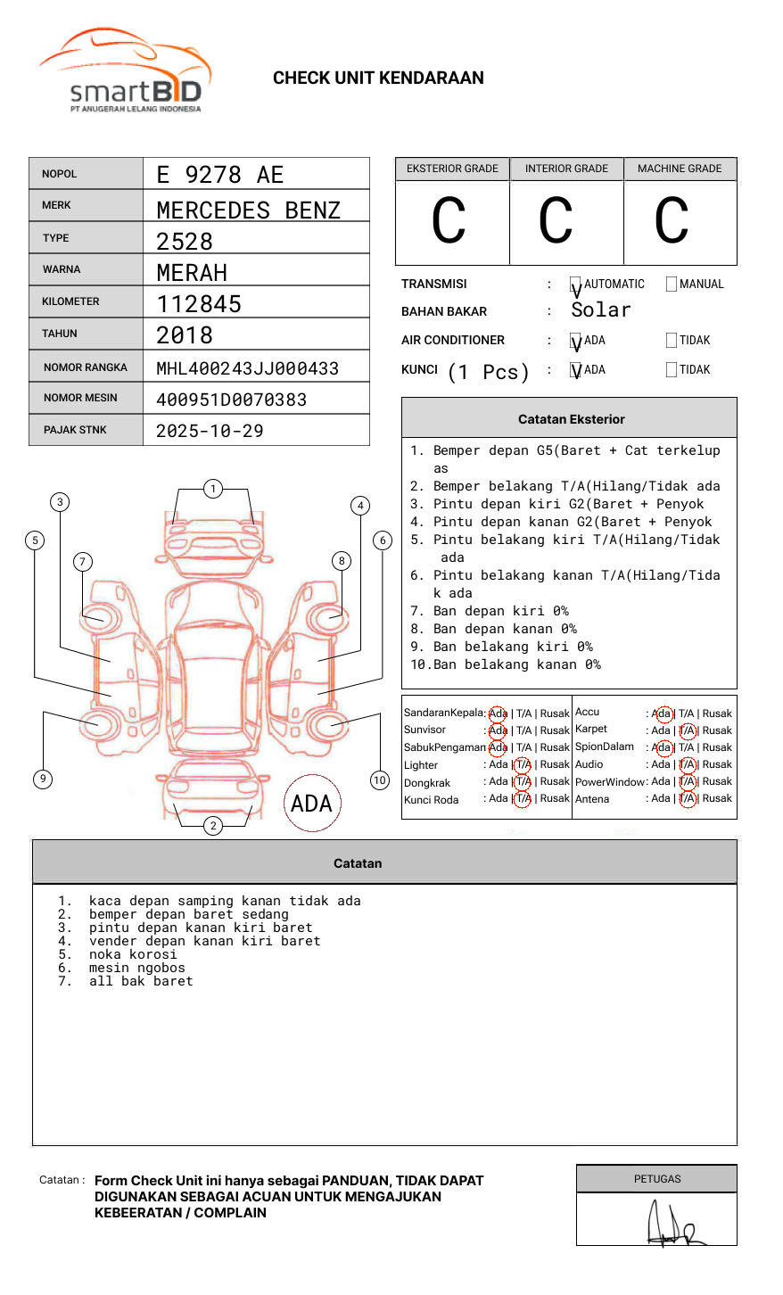 SEBELUM MELAKUKAN PENAWARAN UNIT PESERTA LELANG WAJIB MELAKUKAN PENGECEKAN UNIT DAN DOKUMEN TERLEBIH DAHULU // PEMENANG LELANG DIKENAKAN BIAYA PPN 1.2% DARI HARGA TERBENTUK // PIC AWAL +62 895-3231-57272 / ANDRI 085136886212