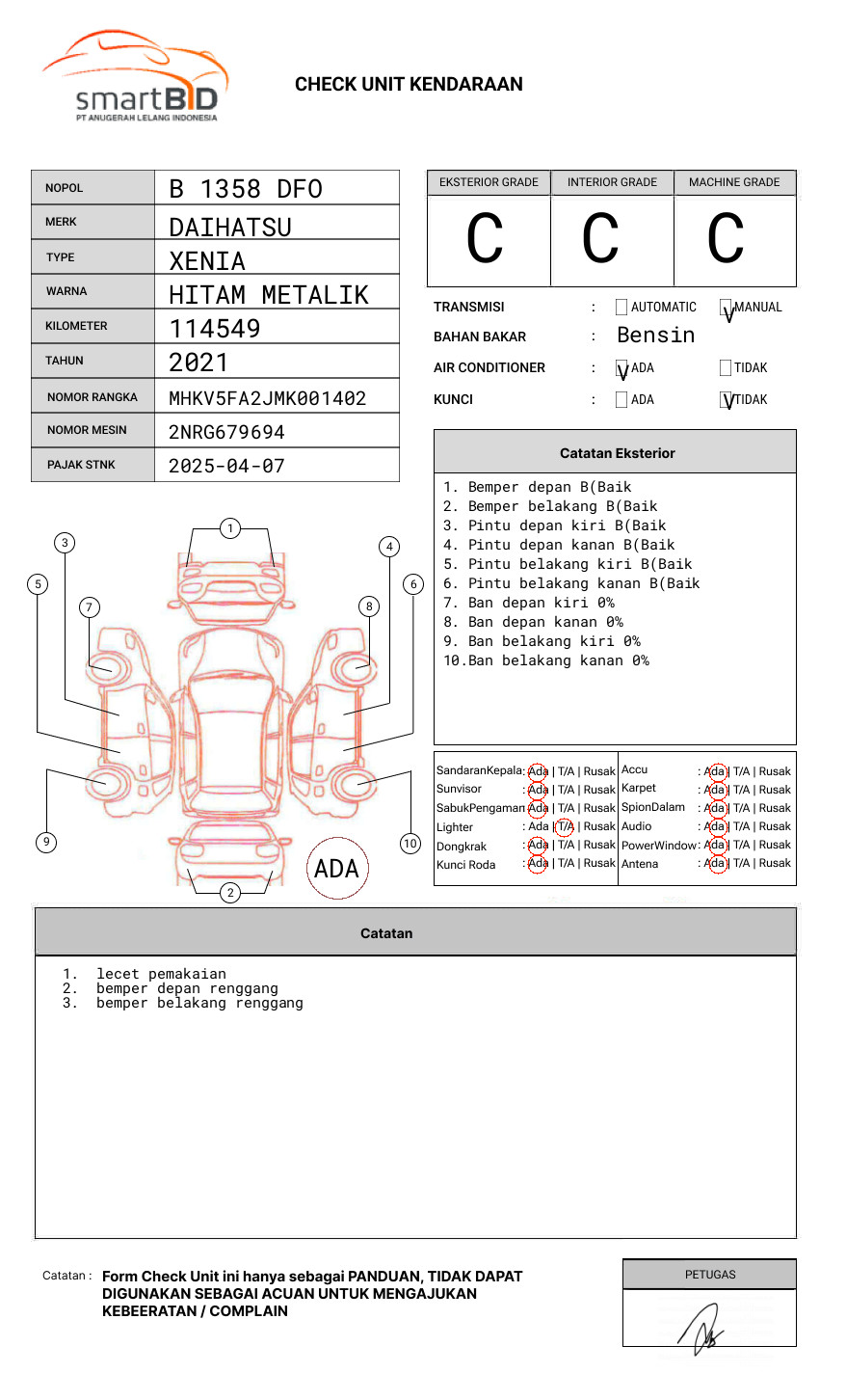 SEBELUM MELAKUKAN PENAWARAN UNIT PESERTA LELANG WAJIB MELAKUKAN PENGECEKAN UNIT DAN DOKUMEN TERLEBIH DAHULU // CHANDRA +62 813-6662-6995 / DEDDY 082280573391 //