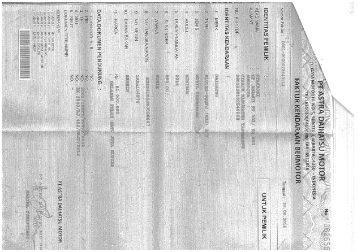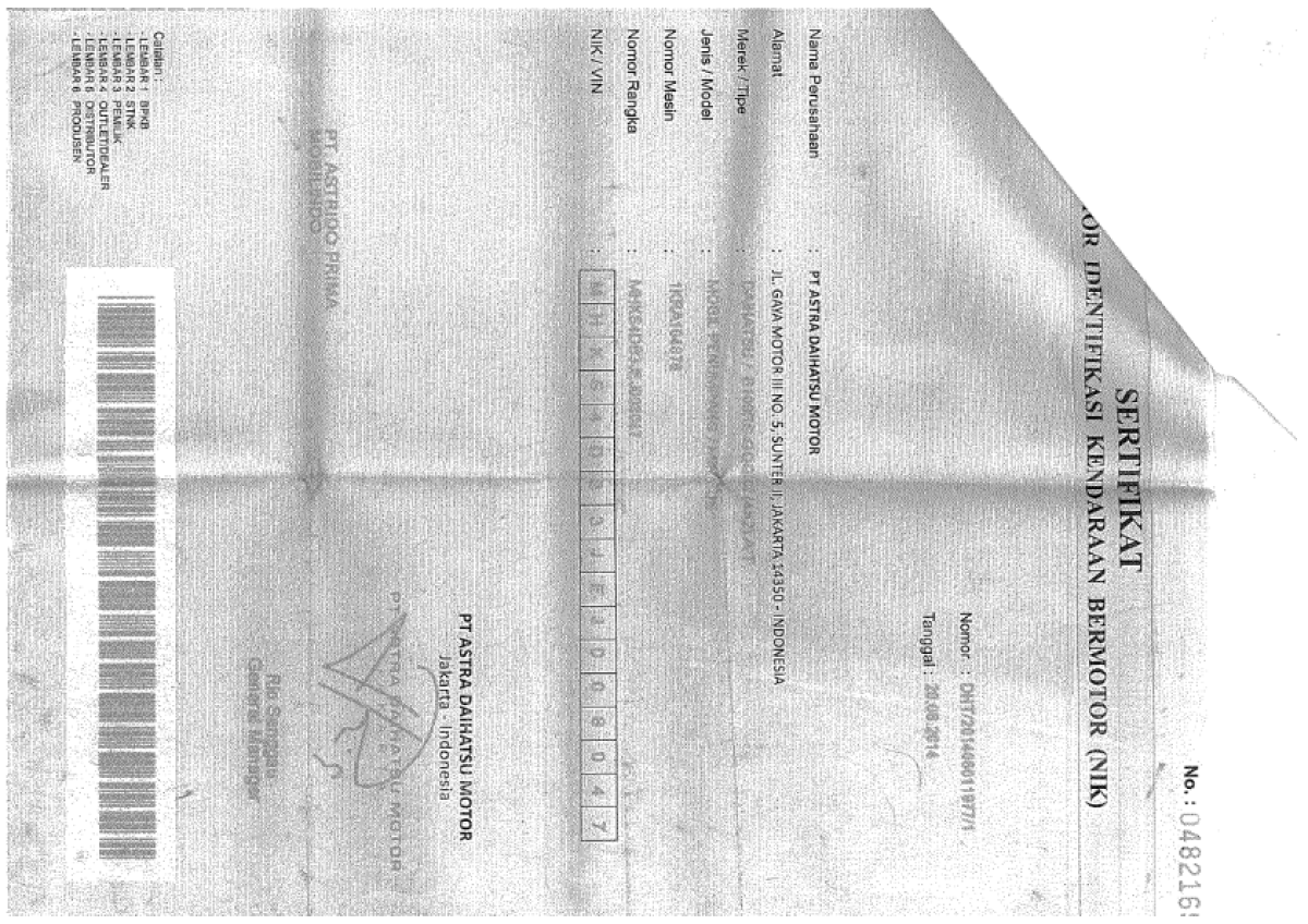 STNK | : | Tidak Ada |