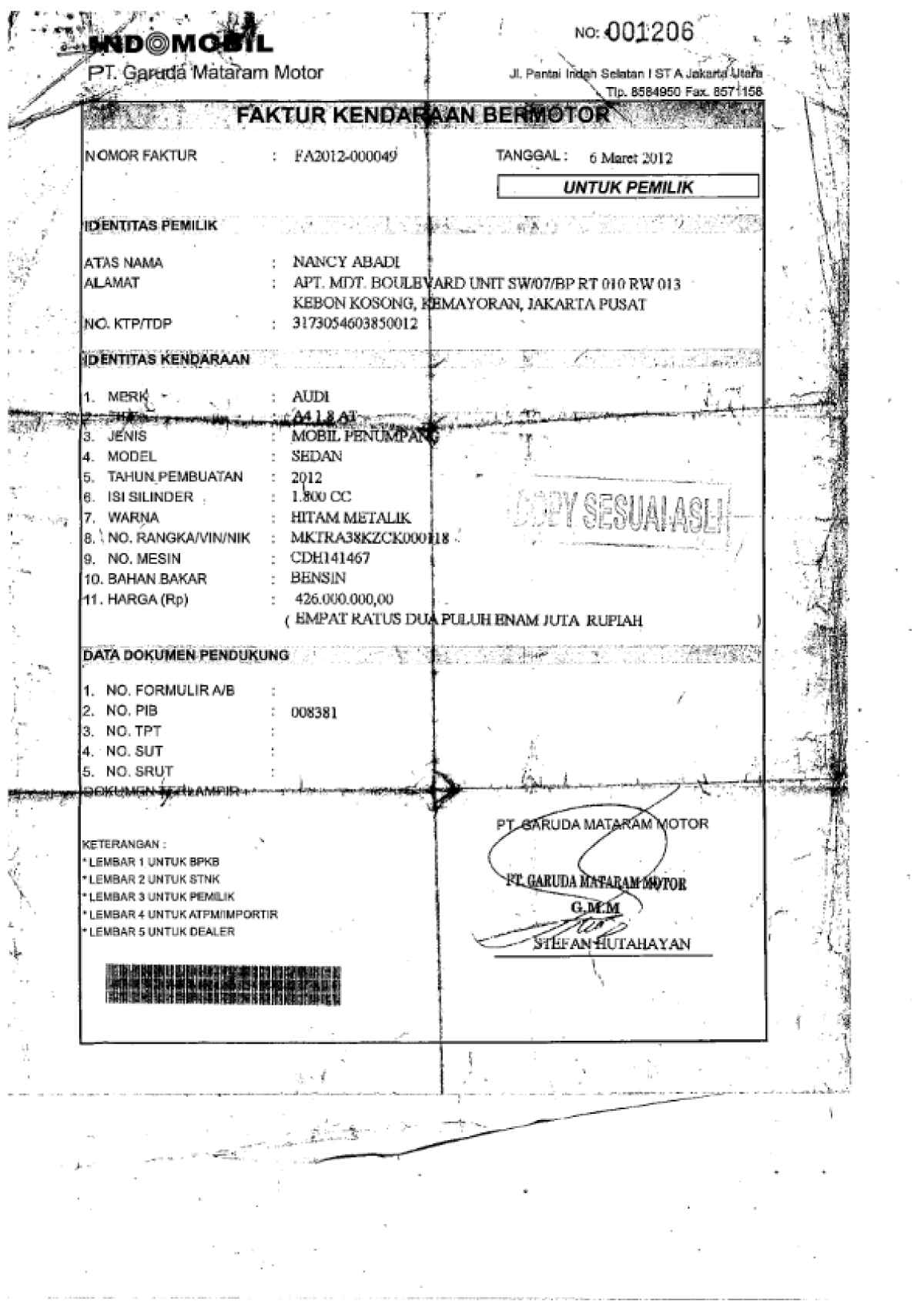 SEBELUM MELAKUKAN PENAWARAN UNIT PESERTA LELANG WAJIB MELAKUKAN PENGECEKAN UNIT DAN DOKUMEN TERLEBIH DAHULU // PIC WAHYU : 082124062748// UNIT DIKENAKAN BIAYA PPN 1.1% DARI HARGA TERBENTUK // KET E-SAMSAT "NOPOL BLOKIR JUAL"// FOTO NOSIN TA//