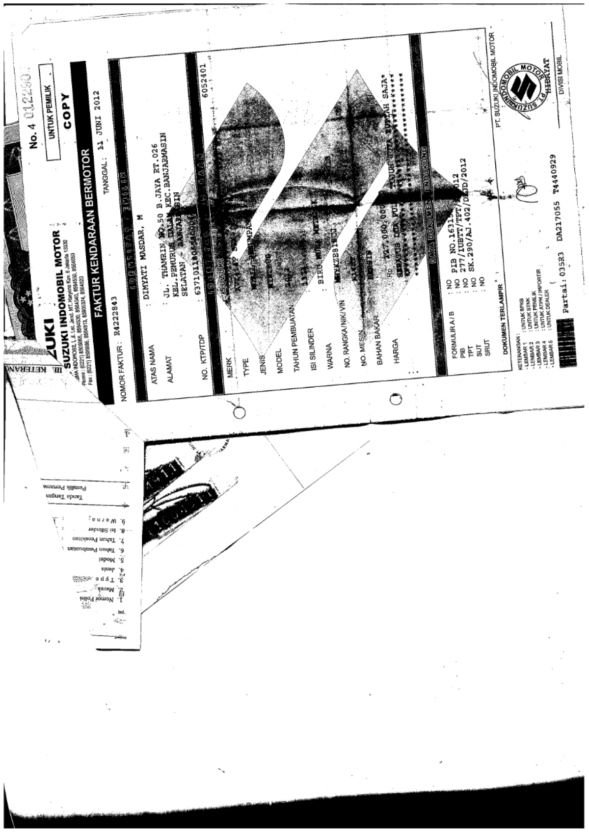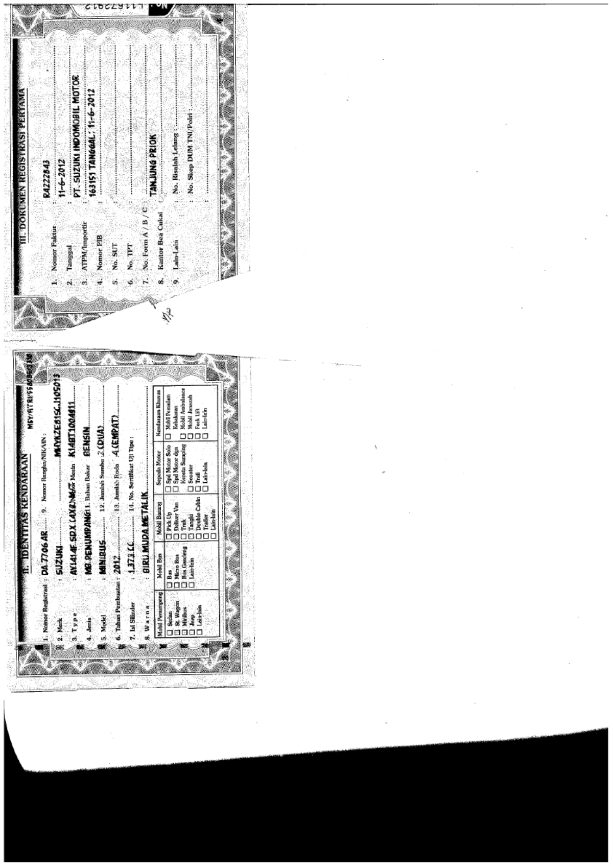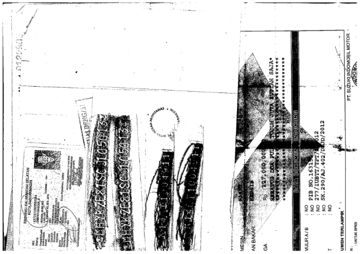 ADA PERBEDAAN NOPOL FISIK (B 1023 BZP) NOPOL DOKUMEN BPKB (DA 7706 AR)// INDIKASI BBN GANTUNG// ADA PERBEDAAN TIPE PADA DOKUMEN BPKB DENGAN TIPE FISIK/ TIPE PADA DOKUMEN BPKB (SDX) SEDANGKAN TIPE EMBLEM FISIK (GX)//
