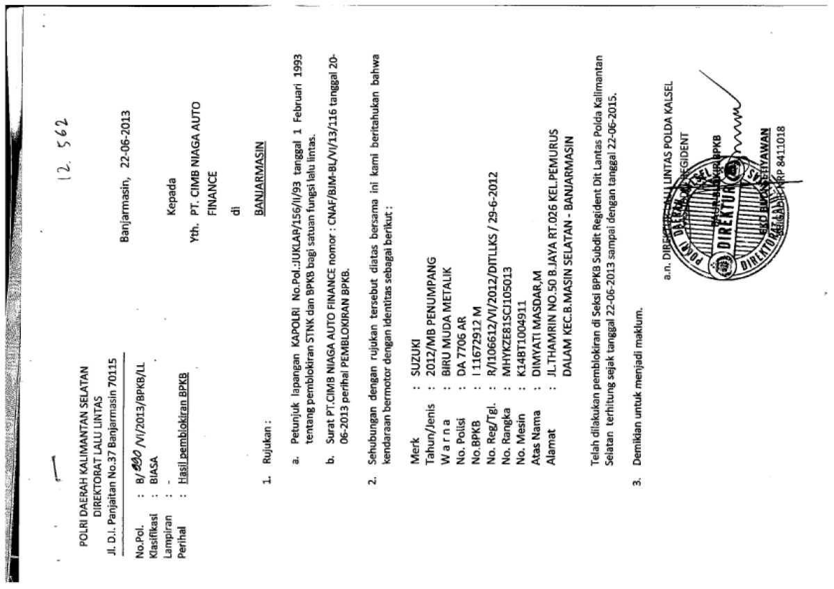 No. Polisi | : | DA 7706 AR |