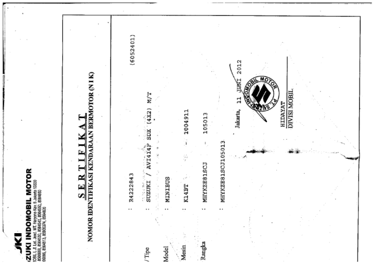 No. Rangka | : | MHYKZE81SCJ105013 |