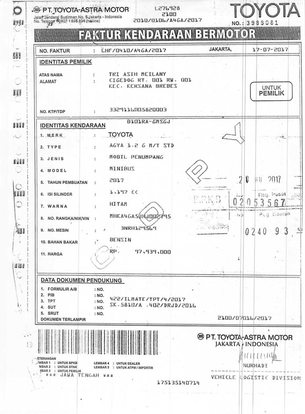 No. Rangka | : | MHKA4GA5JHJ002795 |