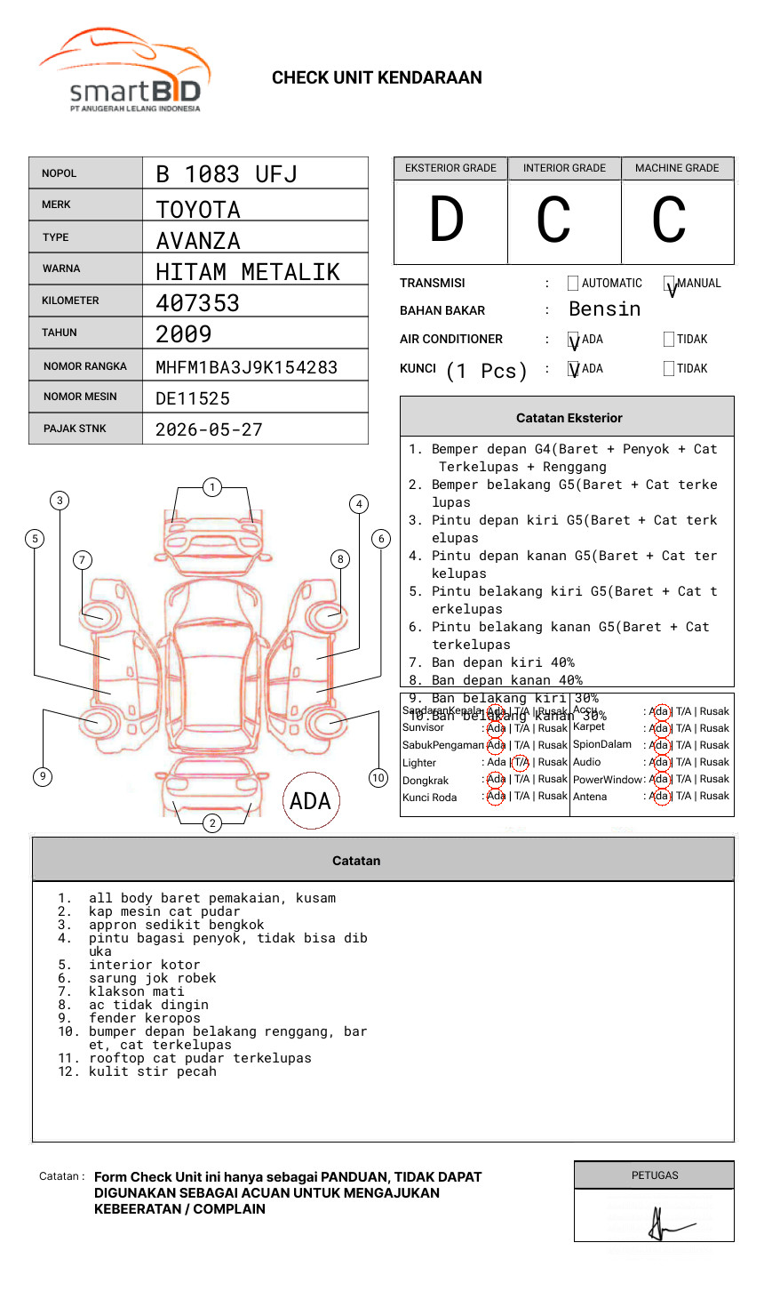 SEBELUM MELAKUKAN PENAWARAN UNIT PESERTA LELANG WAJIB MELAKUKAN PENGECEKAN UNIT DAN DOKUMEN TERLEBIH DAHULU // PIC WAHYU : 082124062748//