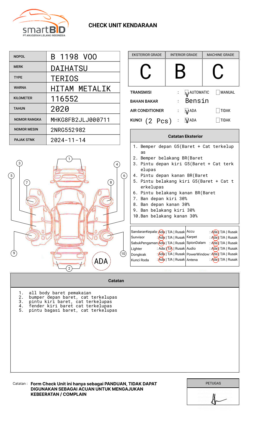 SEBELUM MELAKUKAN PENAWARAN UNIT PESERTA LELANG WAJIB MELAKUKAN PENGECEKAN UNIT DAN DOKUMEN TERLEBIH DAHULU // PIC WAHYU : 082124062748// UNIT DIKENAKAN BIAYA PPN 1.1% DARI HARGA TERBENTUK //