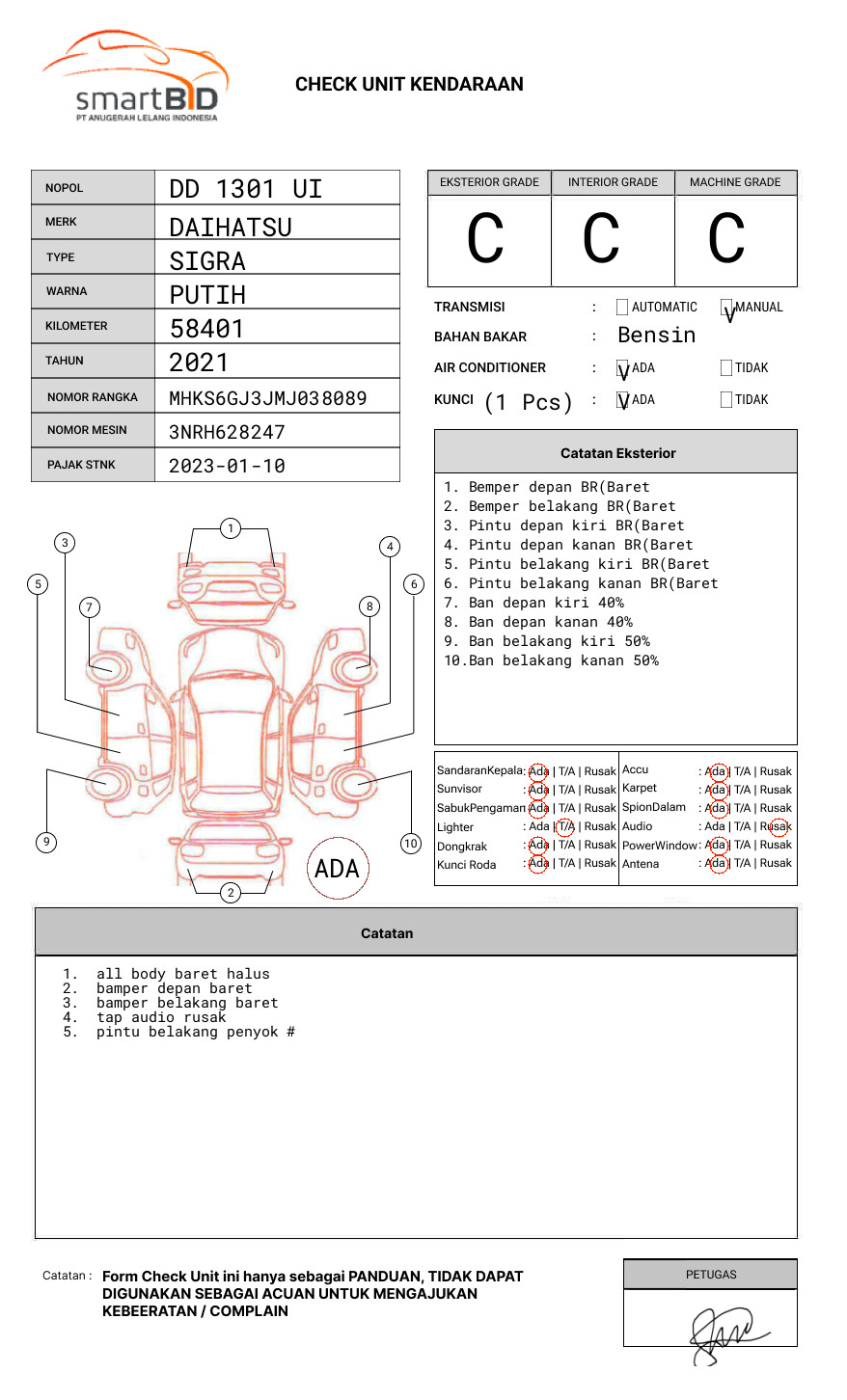 SEBELUM MELAKUKAN PENAWARAN UNIT PESERTA LELANG WAJIB MELAKUKAN PENGECEKAN UNIT DAN DOKUMEN TERLEBIH DAHULU // PIC LULU +62 856-5712-5589//UNIT DIKENAKAN BIAYA PPN 1.1% DARI HARGA TERBENTUK // ADA BIAYA ROYA FIDUSIA 100.000