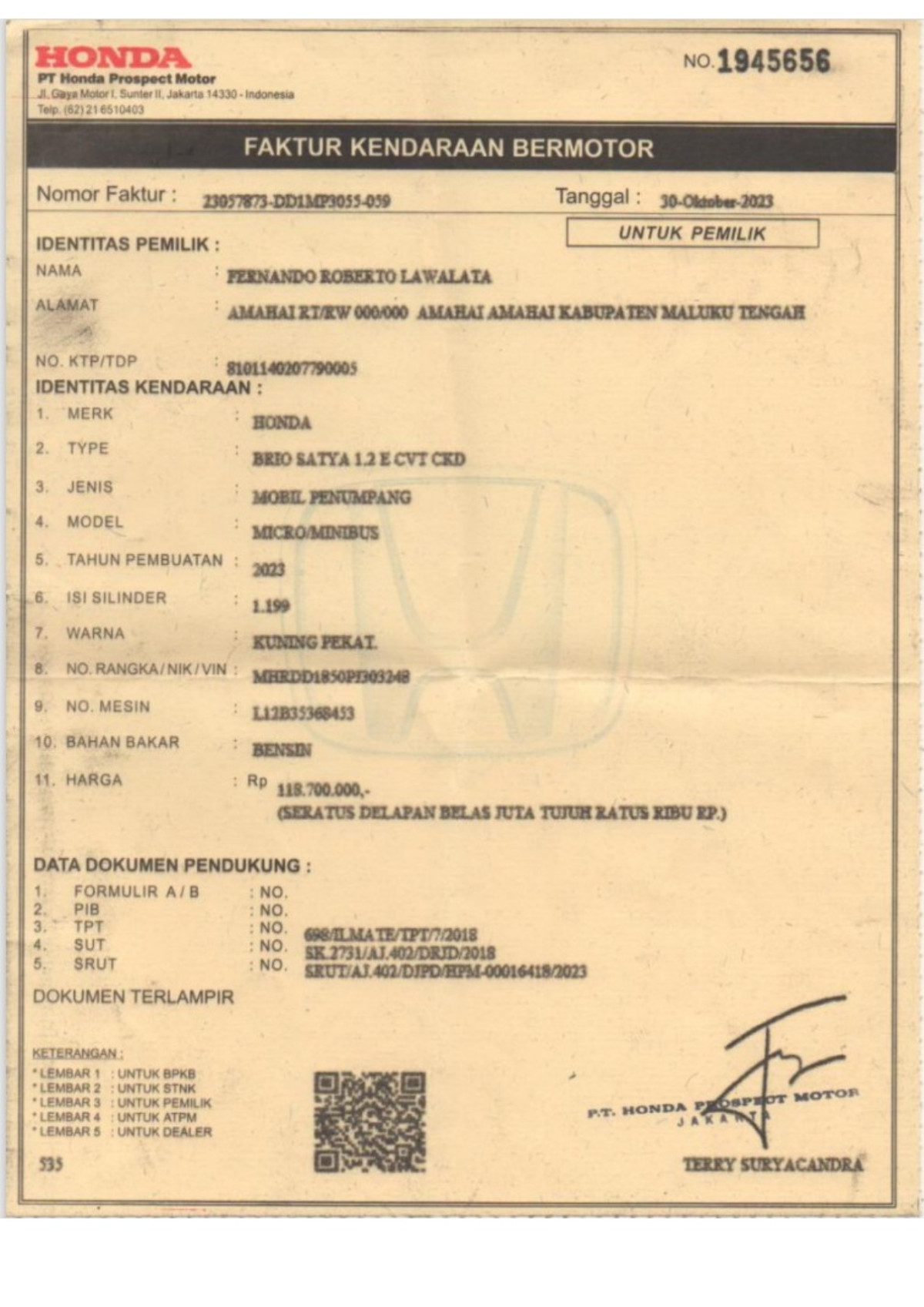SEBELUM MELAKUKAN PENAWARAN UNIT PESERTA LELANG WAJIB MELAKUKAN PENGECEKAN UNIT DAN DOKUMEN TERLEBIH DAHULU // PIC KEVIN+62 813-5414-9141 // UNIT DIKENAKAN BIAYA PPN 1.1% DARI HARGA TERBENTUK // ADA BIAYA ROYA FIDUCIA 100,000 DITANGGUNG PEMENANG