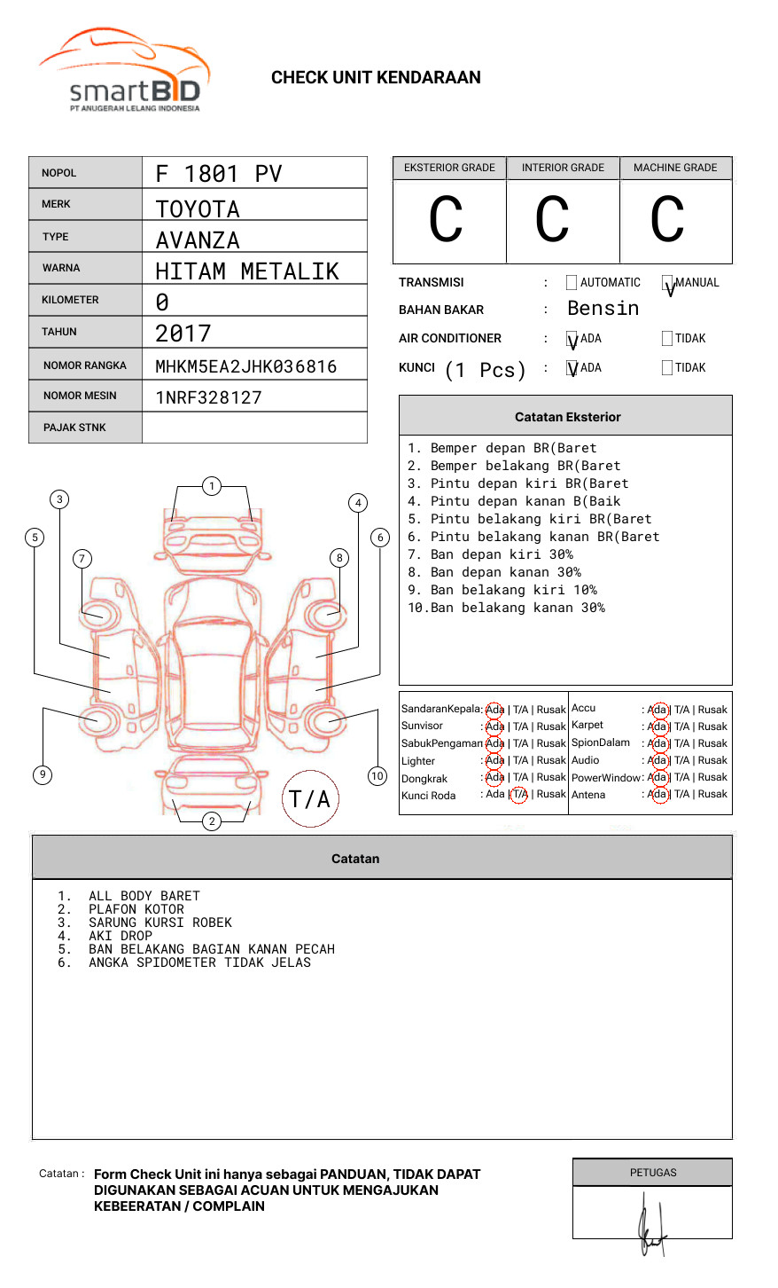 NOPOL PADA FISIK T/A // SEBELUM MELAKUKAN PENAWARAN UNIT PESERTA LELANG WAJIB MELAKUKAN PENGECEKAN UNIT DAN DOKUMEN TERLEBIH DAHULU // PIC BOY +62 821-8725-3174 / ASMAR 082278281728 // UNIT DIKENAKAN BIAYA PPN 1.1% DARI HARGA TERBENTUK //